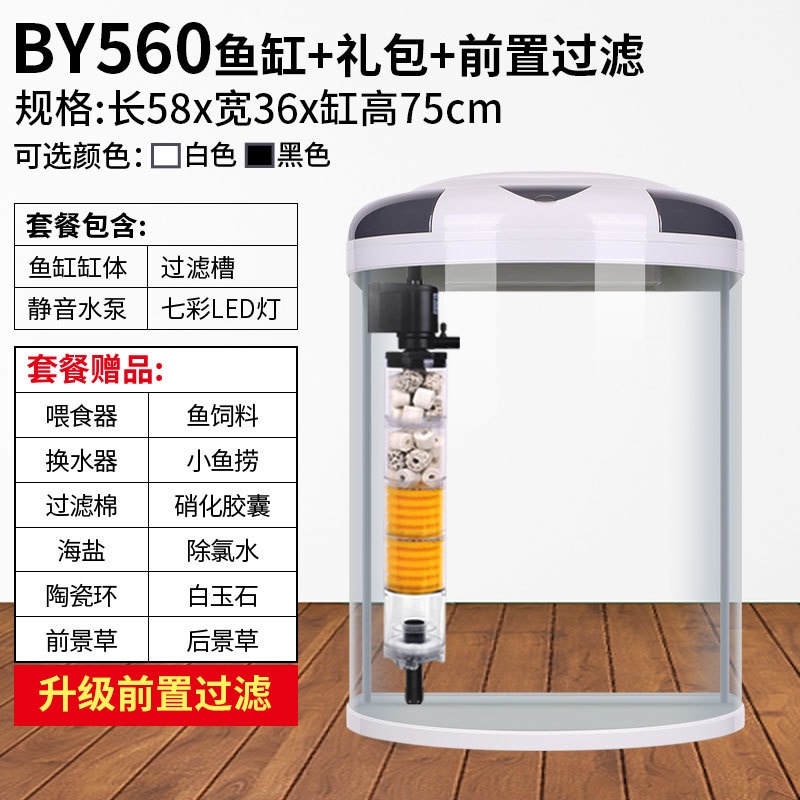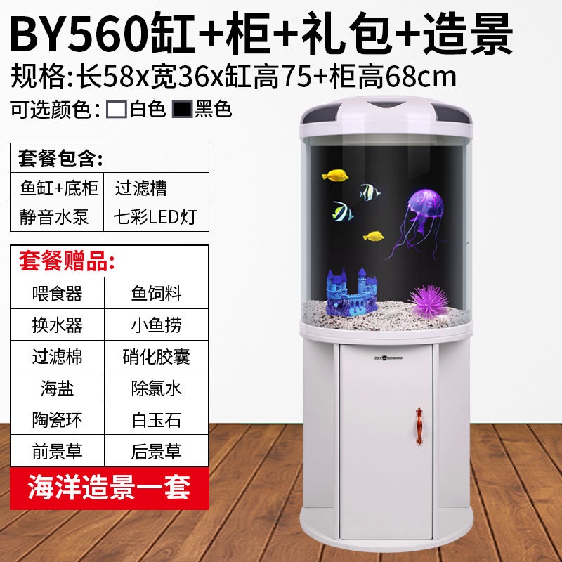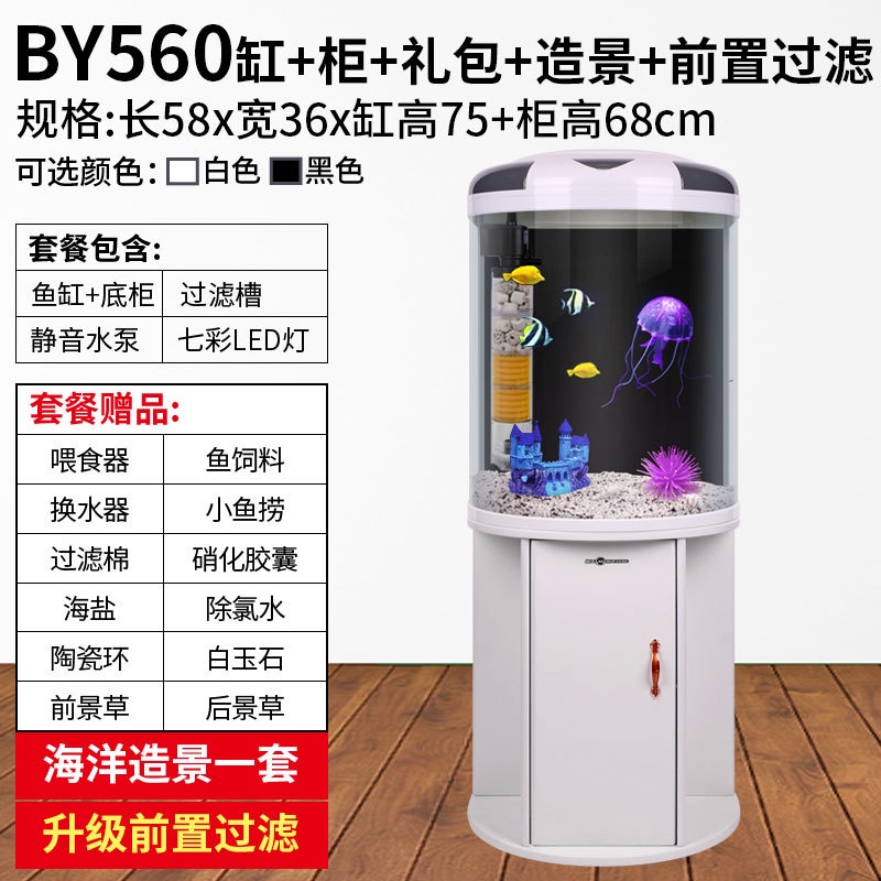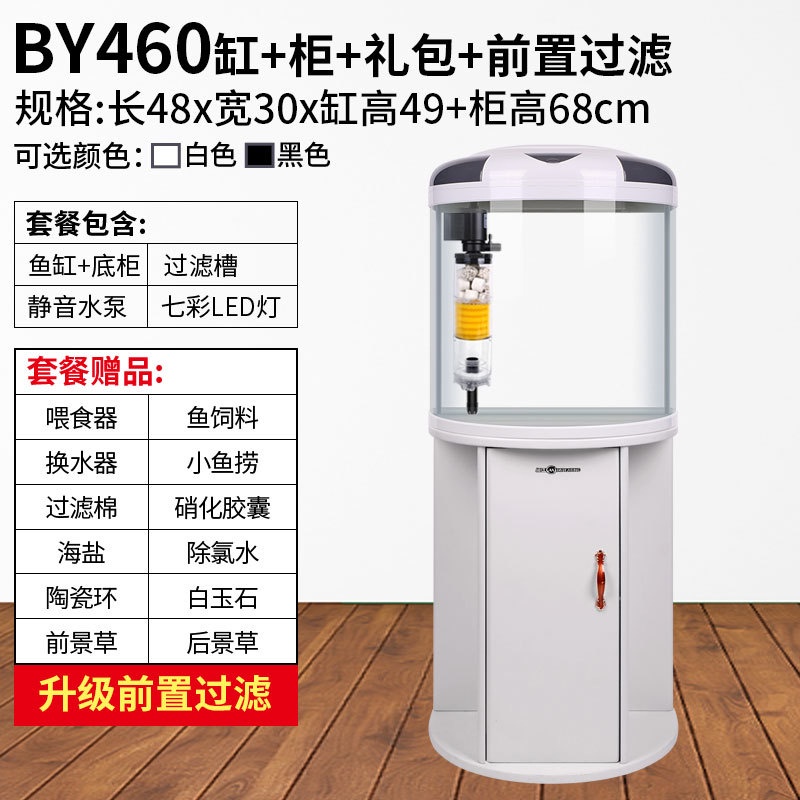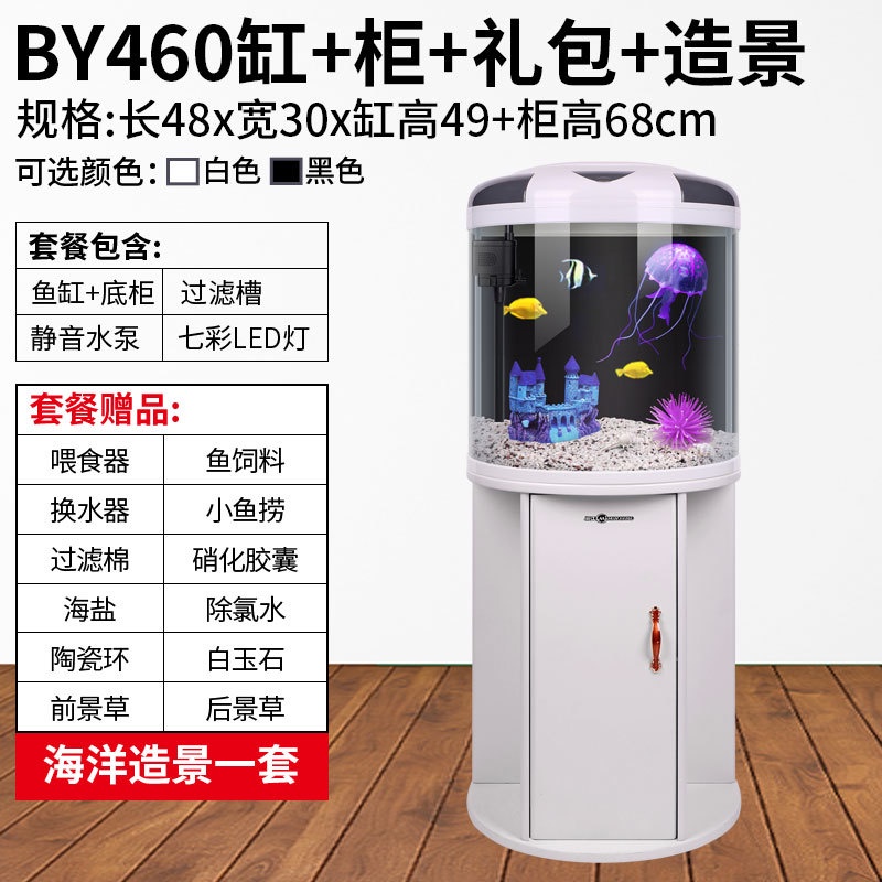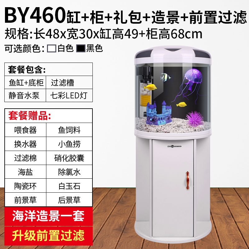 RUNPET Minjiang fish tank living room semicircular aquarium cylindrical small water free goldfish tank modern household with cabinet landing 022.sg