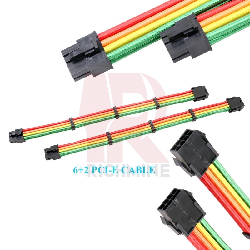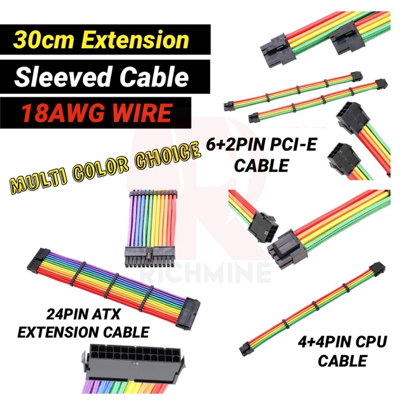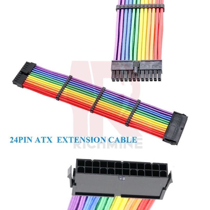 Rainbow Braided Modding Cable Sleeved Extension PSU COMB Sleeve GAMING DESKTOP PC