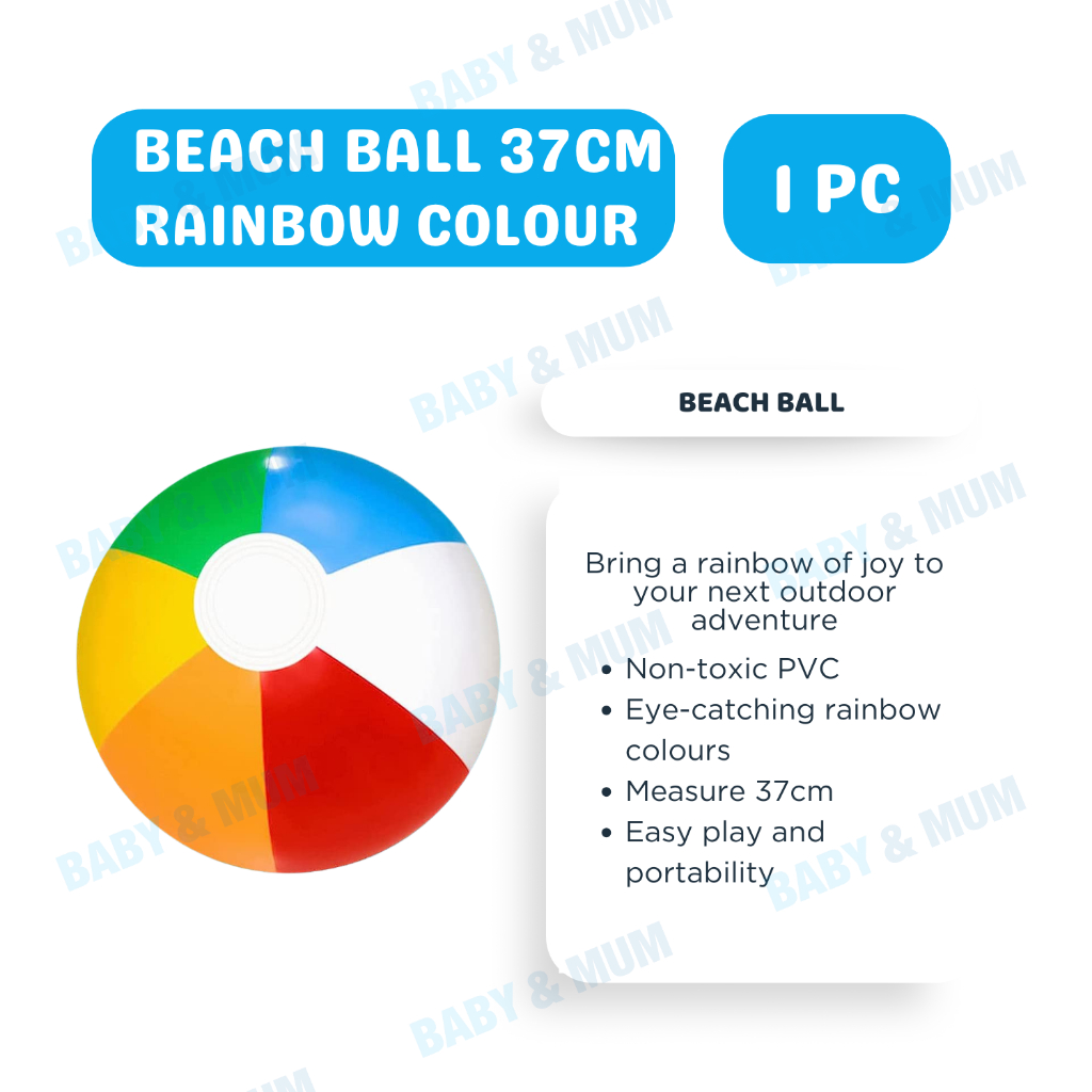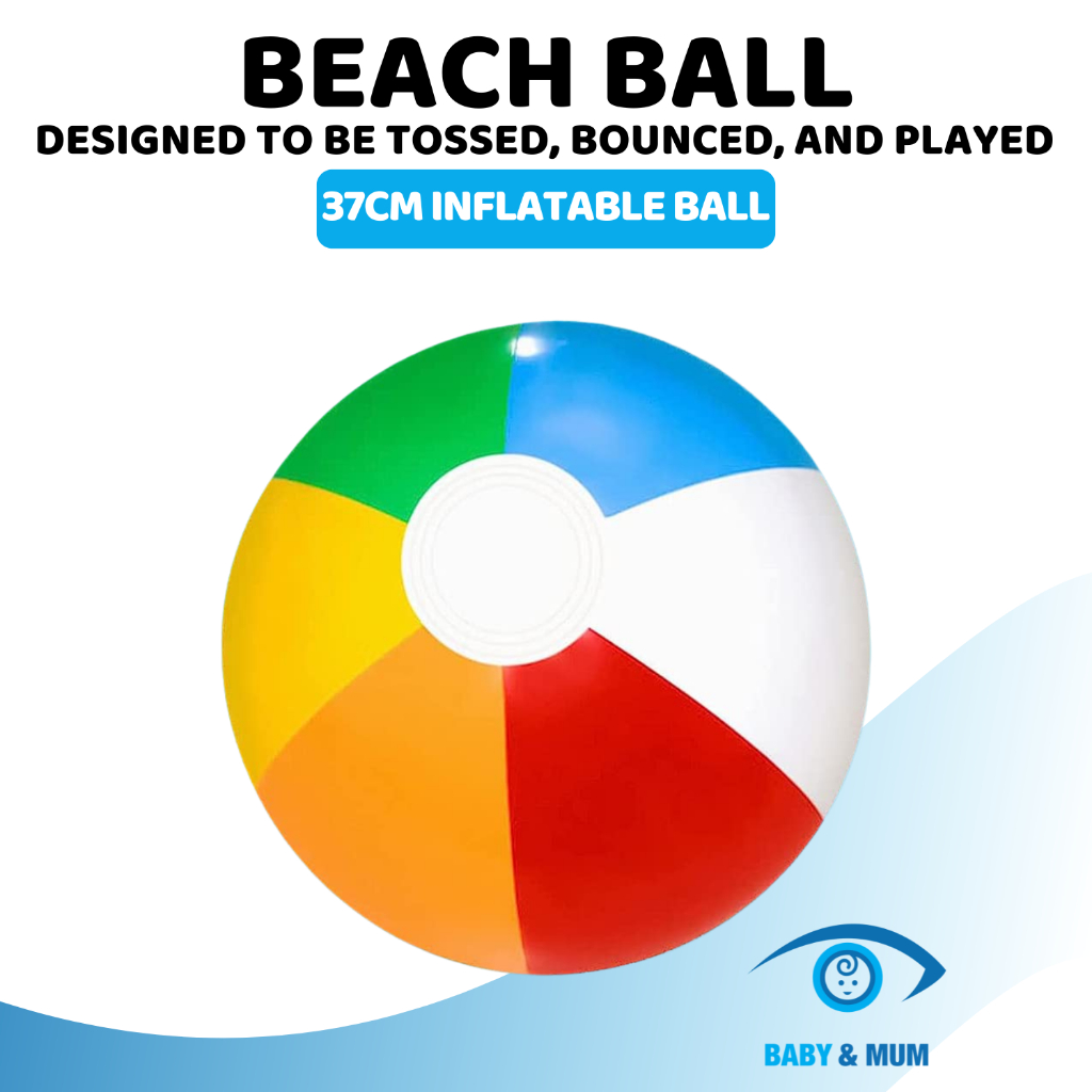 Rainbow Inflatable Beach Ball 37cm-16 inch Swimming Pool Ball | SG LOCAL STOCK