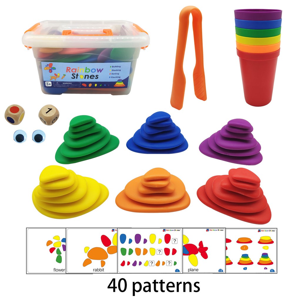 Rainbow Pebbles - In Home Learning Toy for Early Math - Sorting and Stacking Stones