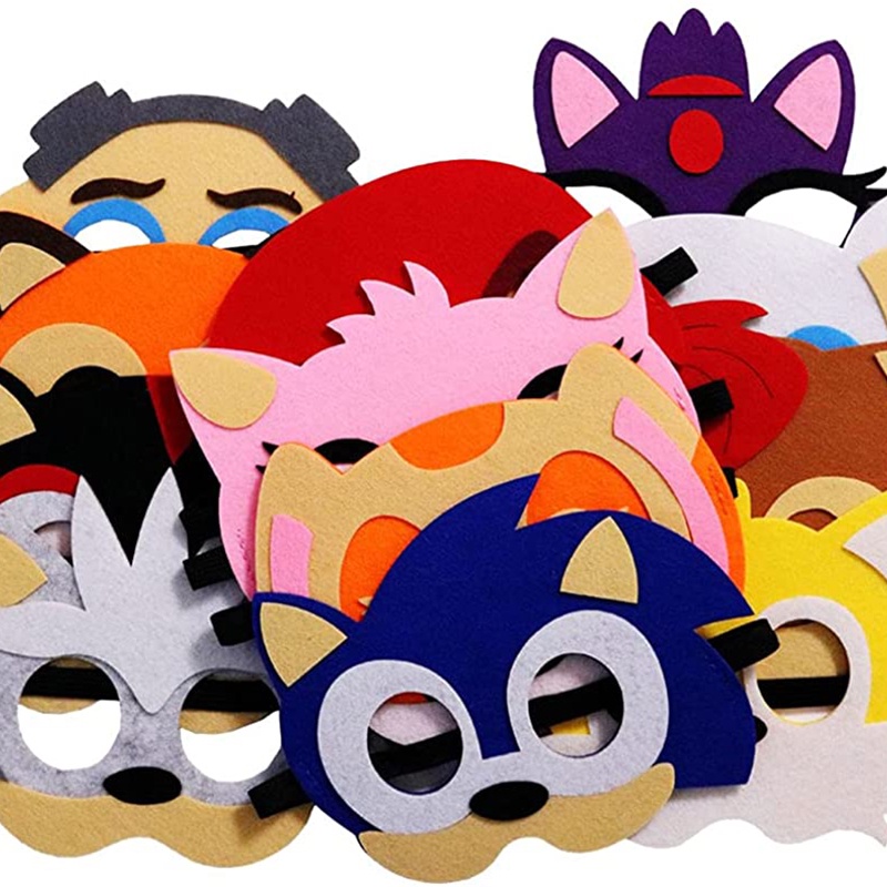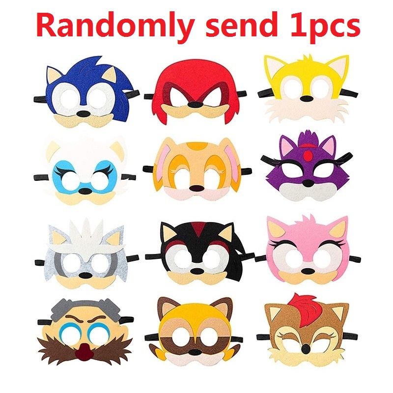 Random 1pcs Sonic the Hedgehog Halloween Kid Masks Cartoon Felt Cloth Mask Multi Styles Half Face Masks Birthday Favors Cosplay Toy for Boys Girls Party Mask