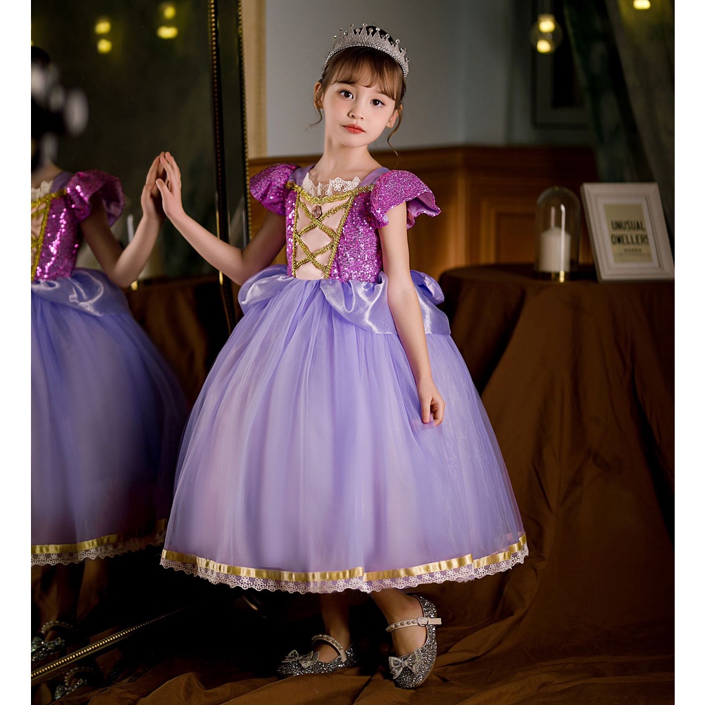 Rapunzel Costume Kids Birthday Party Princess Dress Disney Cartoon Tangled Costume