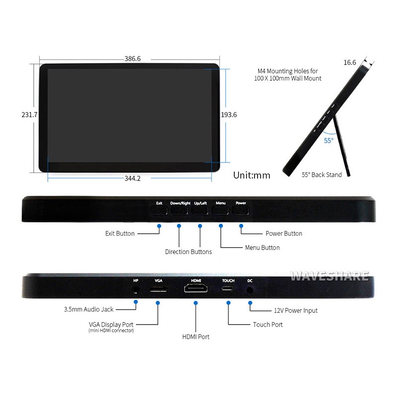 Raspberry Pi 15.6 inch HDMI Capacitive Touch LCD H with Case IPS 1920x1080