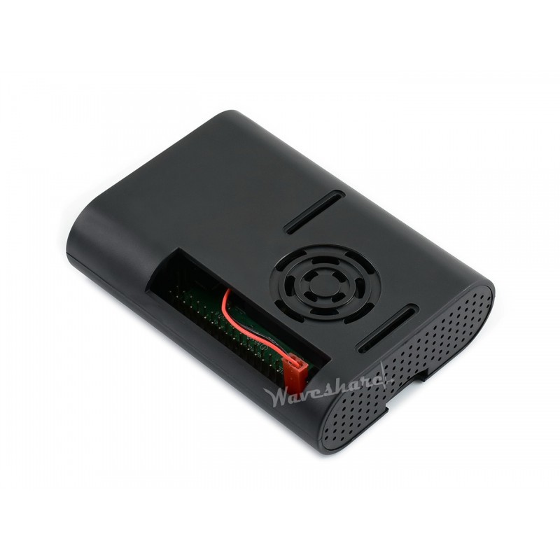 Raspberry Pi 4 Model B Black ABS Plastic Casing with Cooling Fan and Heat Sink RPi 4 Case Cover Enclosure Shell Heatsink