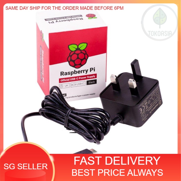 Raspberry Pi 4 Model B POWER SUPPLY *Official* PSU, USB-C , 5.1V , 3A , SG Plug , Black/White