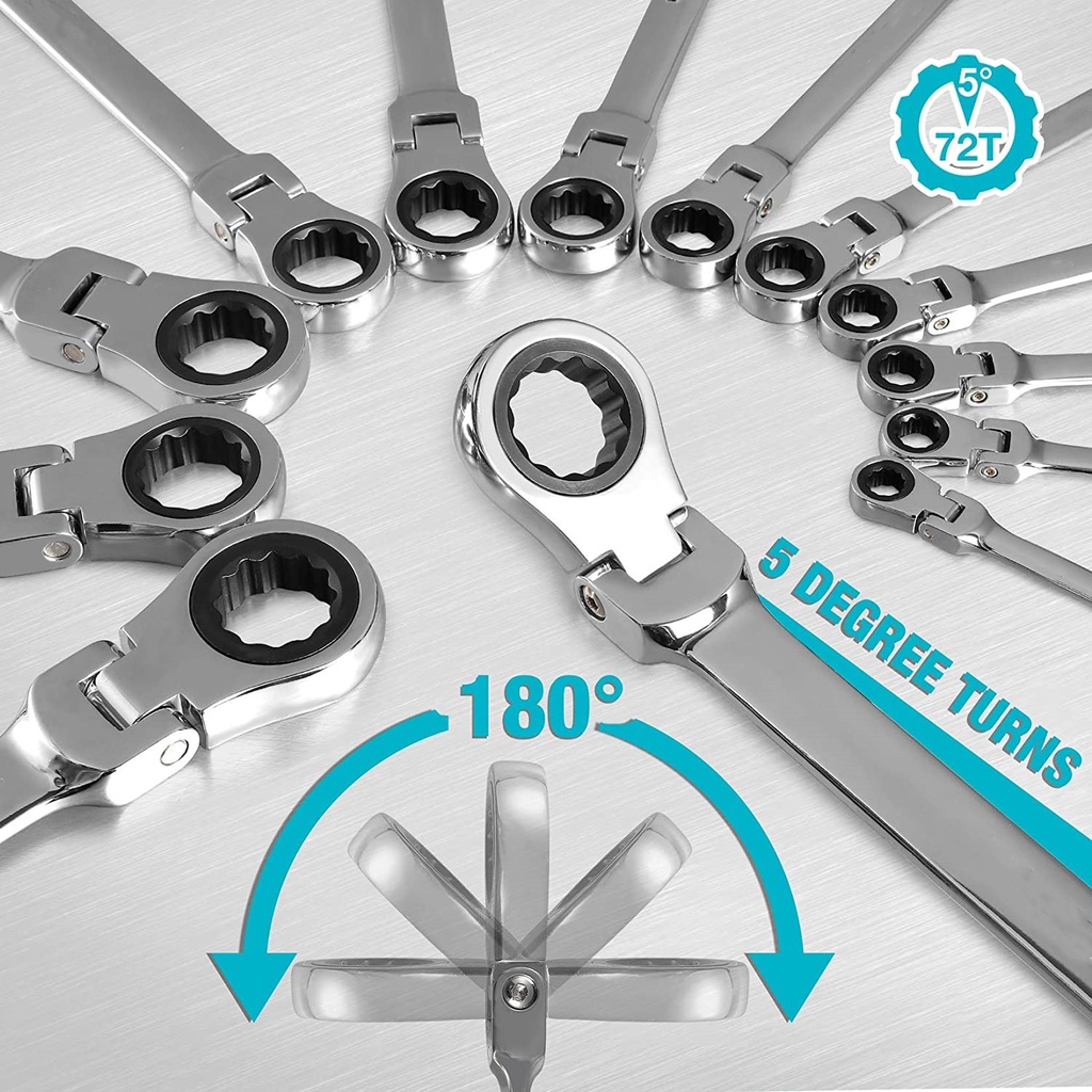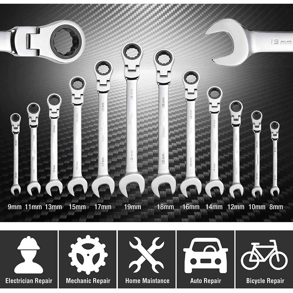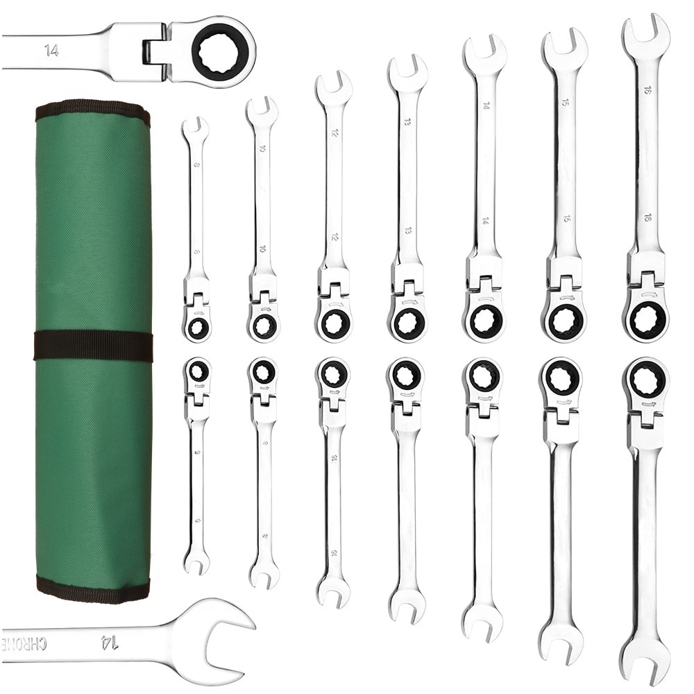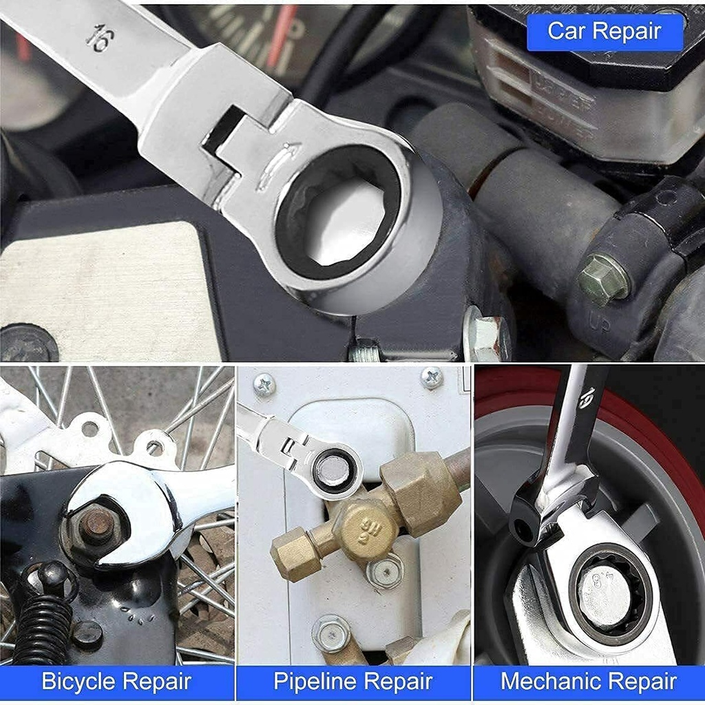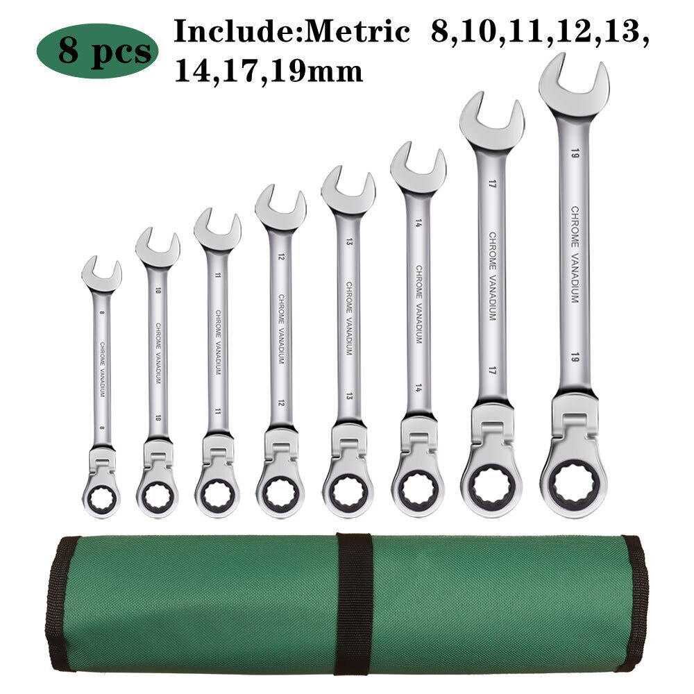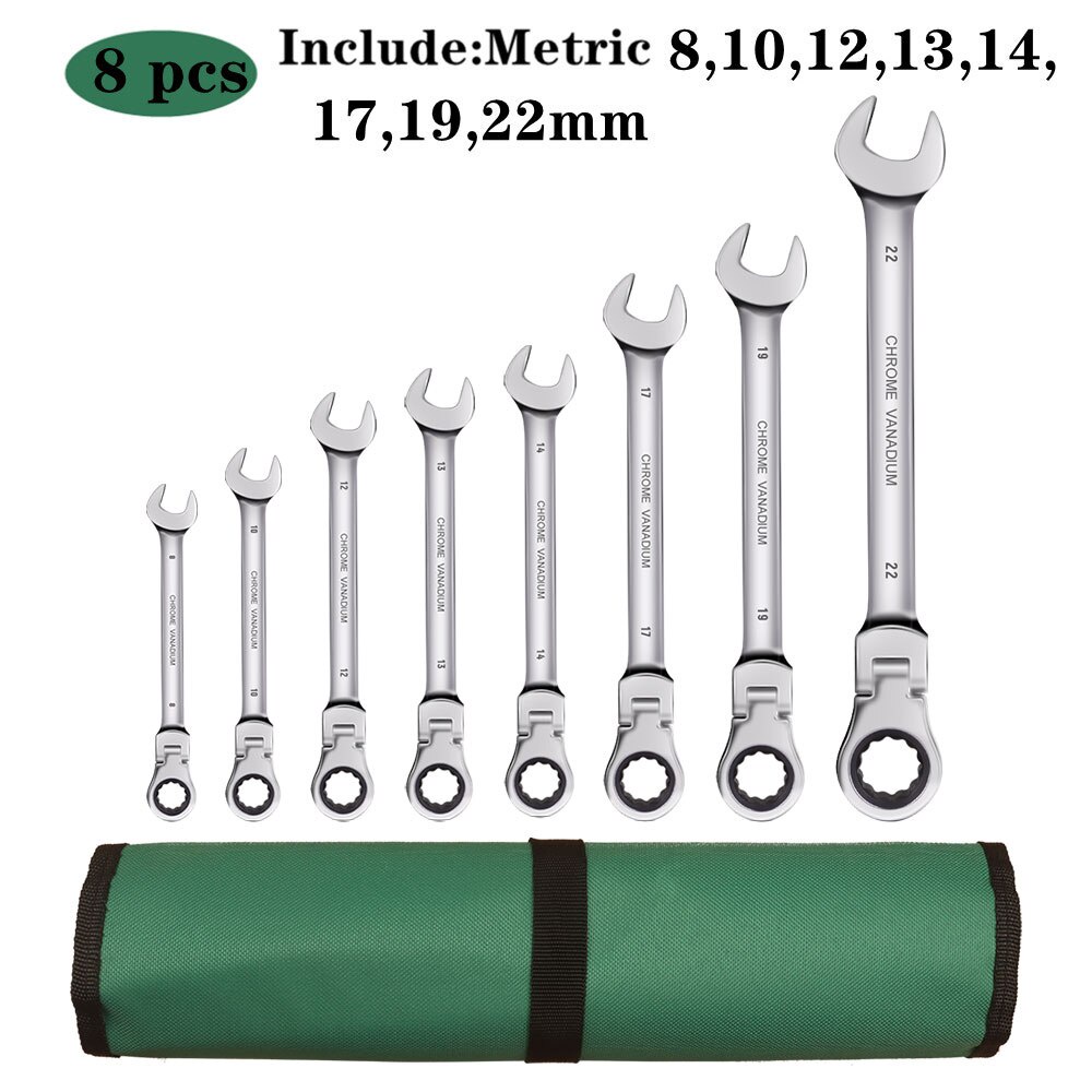 Ratchet Combination Metric Wrench Set with Movable Head, Socket Wrench and Gear Ring Torque Key Wrench Set Car Repair Tool