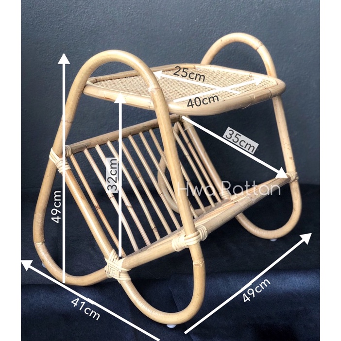 Rattan webbing magazine rack coffee table side table / Rak rotan woven meja kecil webbing table / Rak majalah