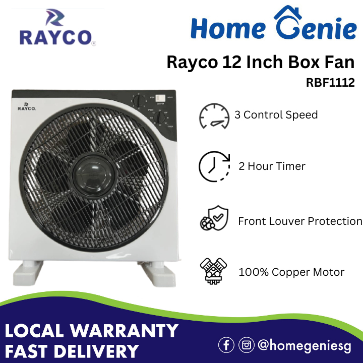 Rayco 12 Inch Louver Inch Box Fan RBF1112 With Timer Portable Desk Fan