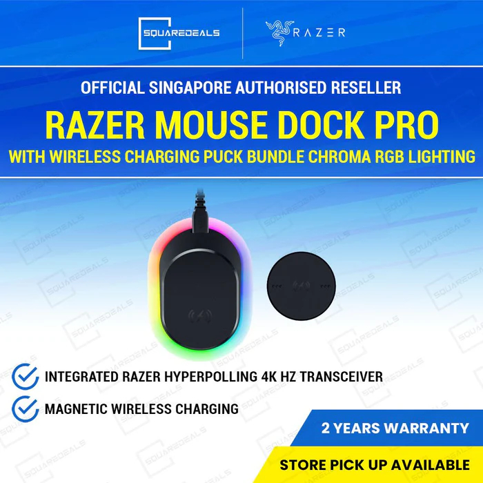 Razer Mouse Dock Pro with Wireless Charging Puck Bundle Chroma RGB Lighting