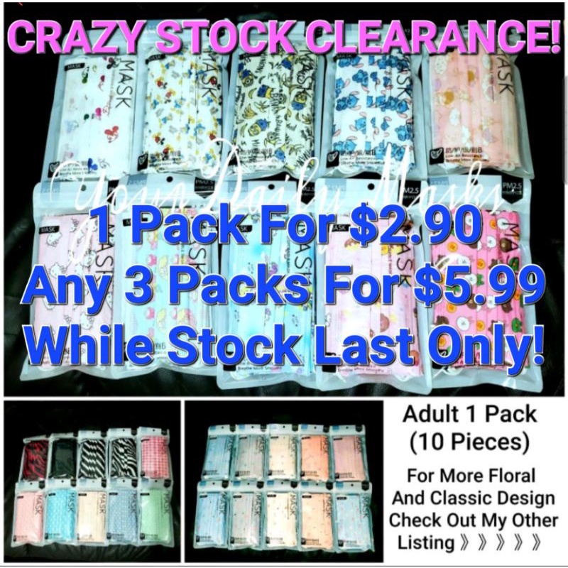 Ready Stock SG Hello Kitty Mask and Mickey Mouse, 3ply Surgical Mask, Disposable Mask for Adult