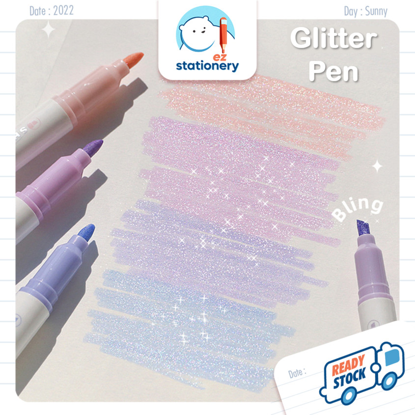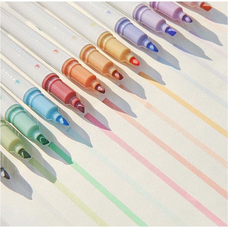 Ready Stock Twinkle Shiny Glitter Highlighter Pen Set Bling Sparkling Highlight Pen Marker Pastel Morandi Journal Pen