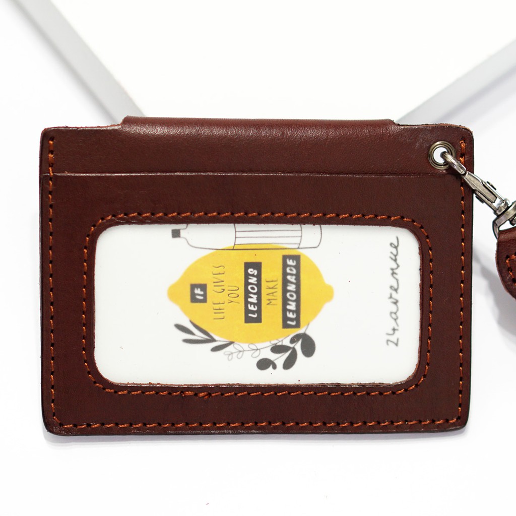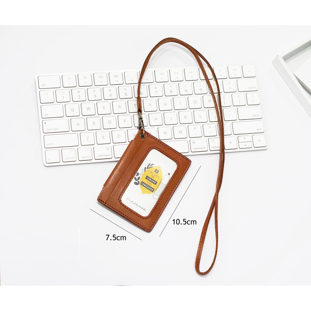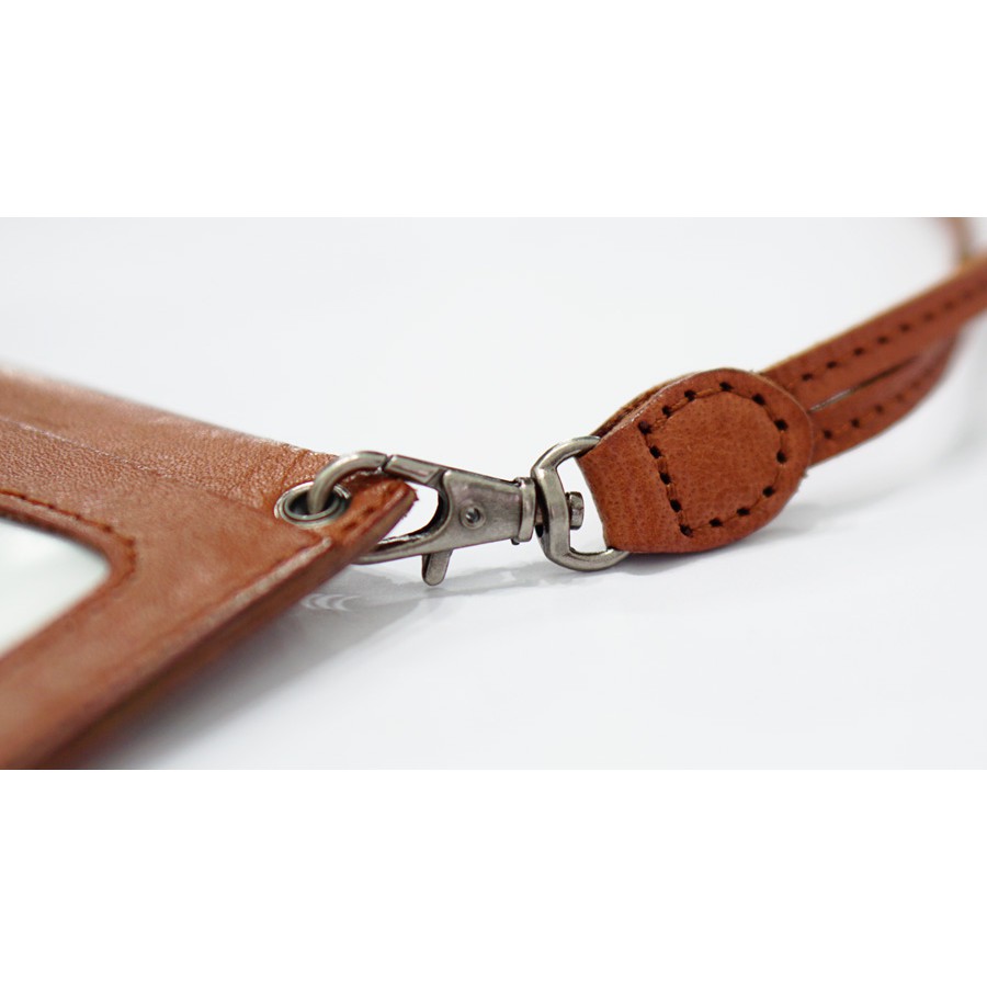 Real Calf Leather Lanyard Access Card Holder