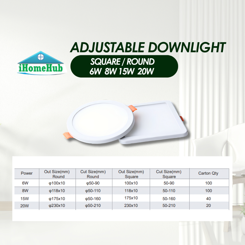 Recessed LED Downlight / Adjustable Type/ Square Round 6W 8W 15W 20W