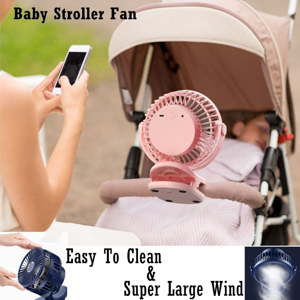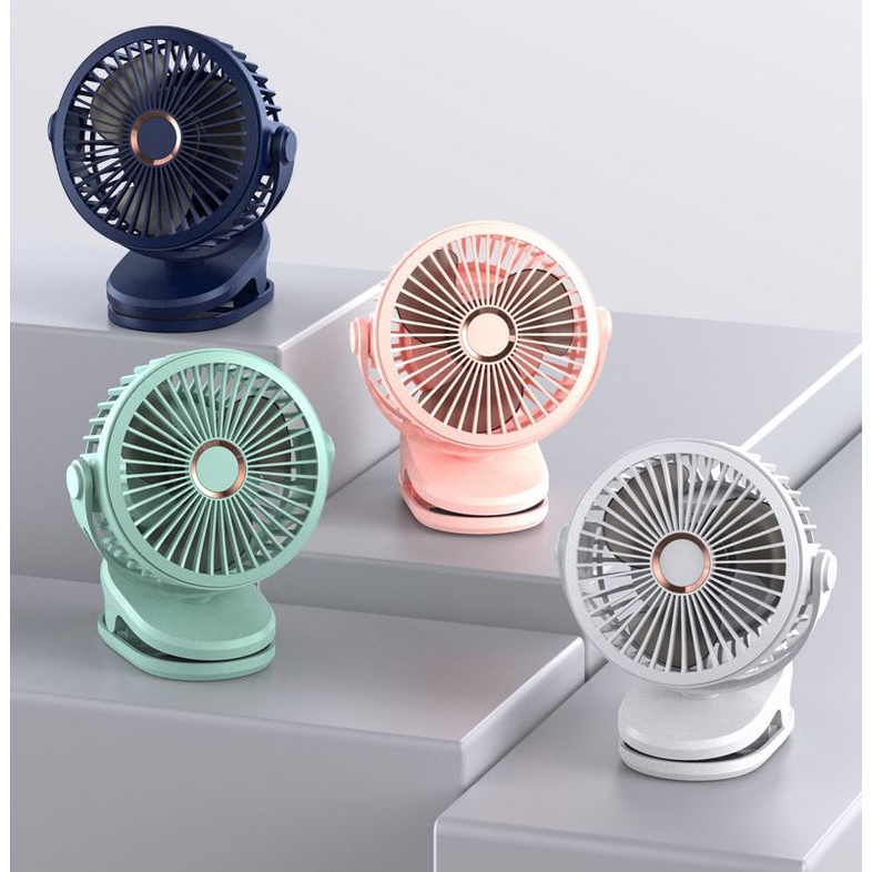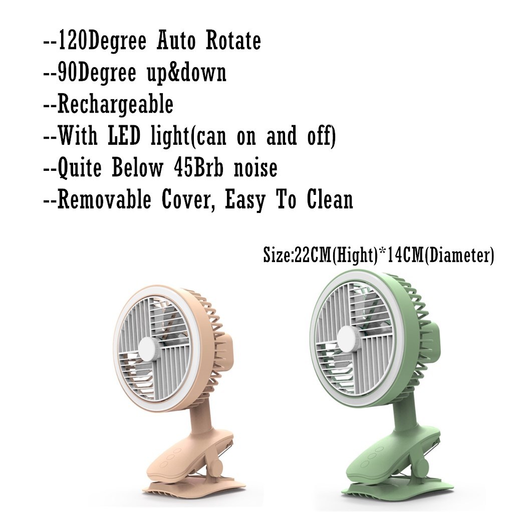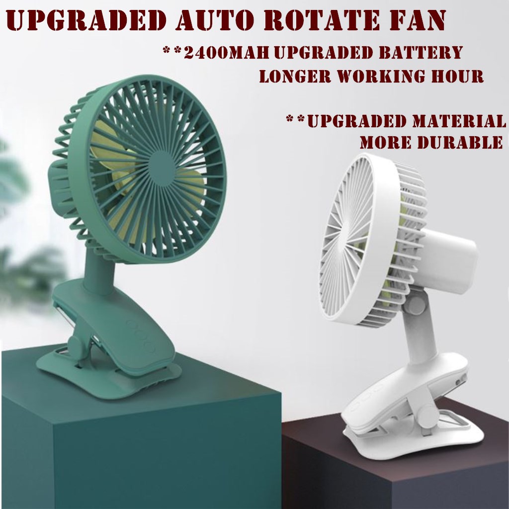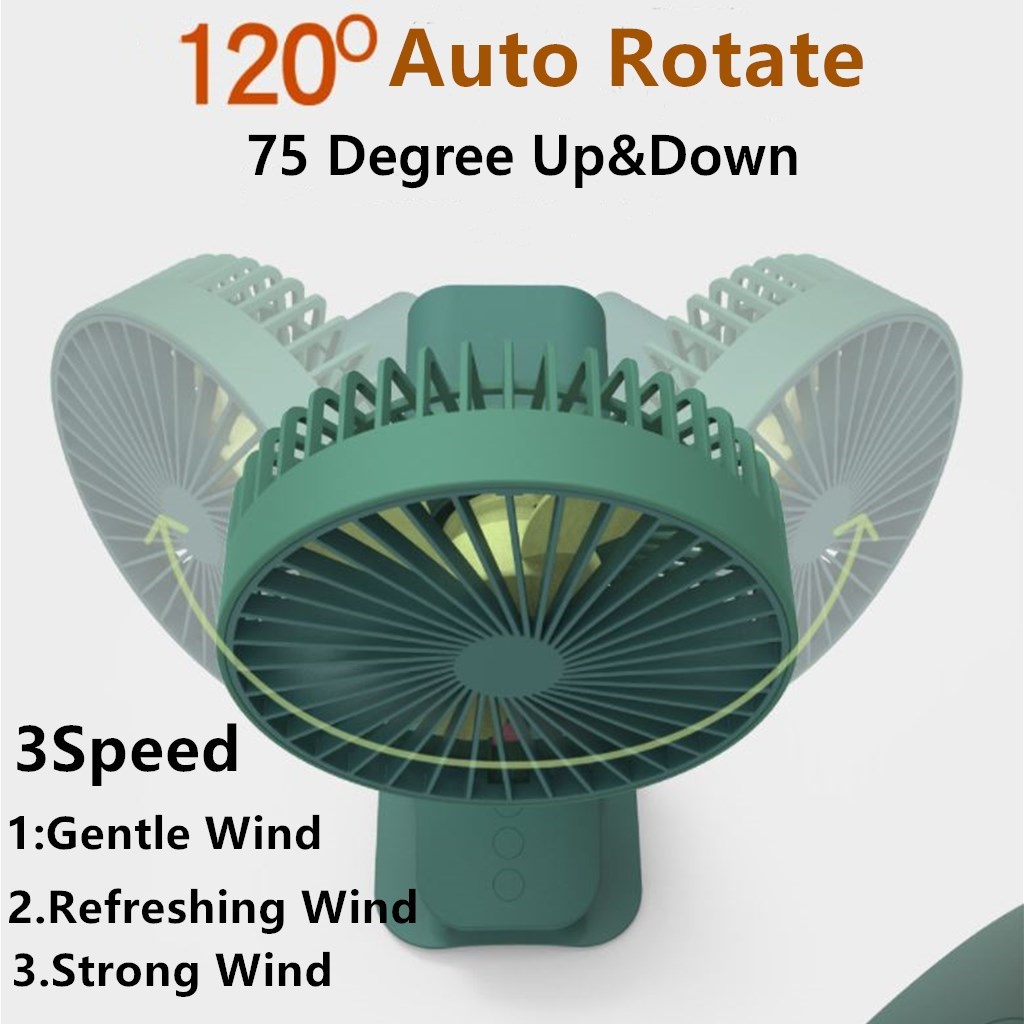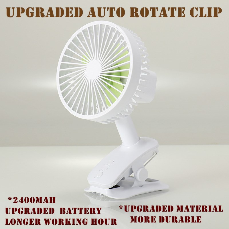 Rechargeable Portable Auto Rotate Desk Clip Fan Baby Stroller Click Fan Mini Handheld Fan 3 Speeds