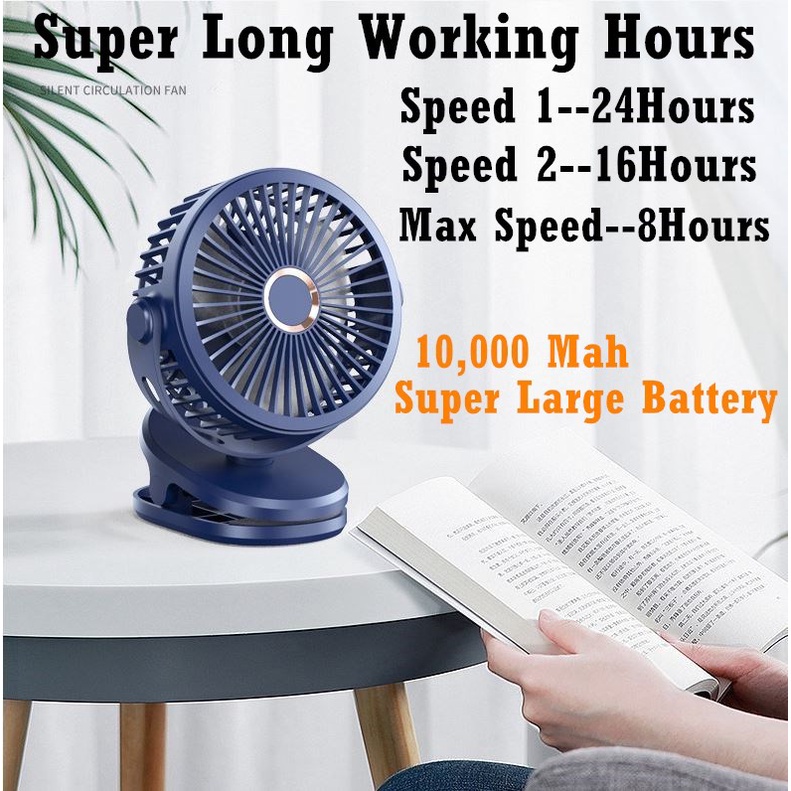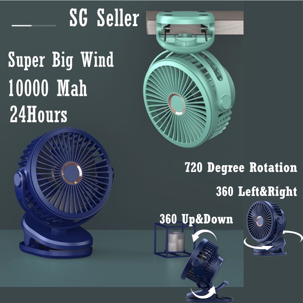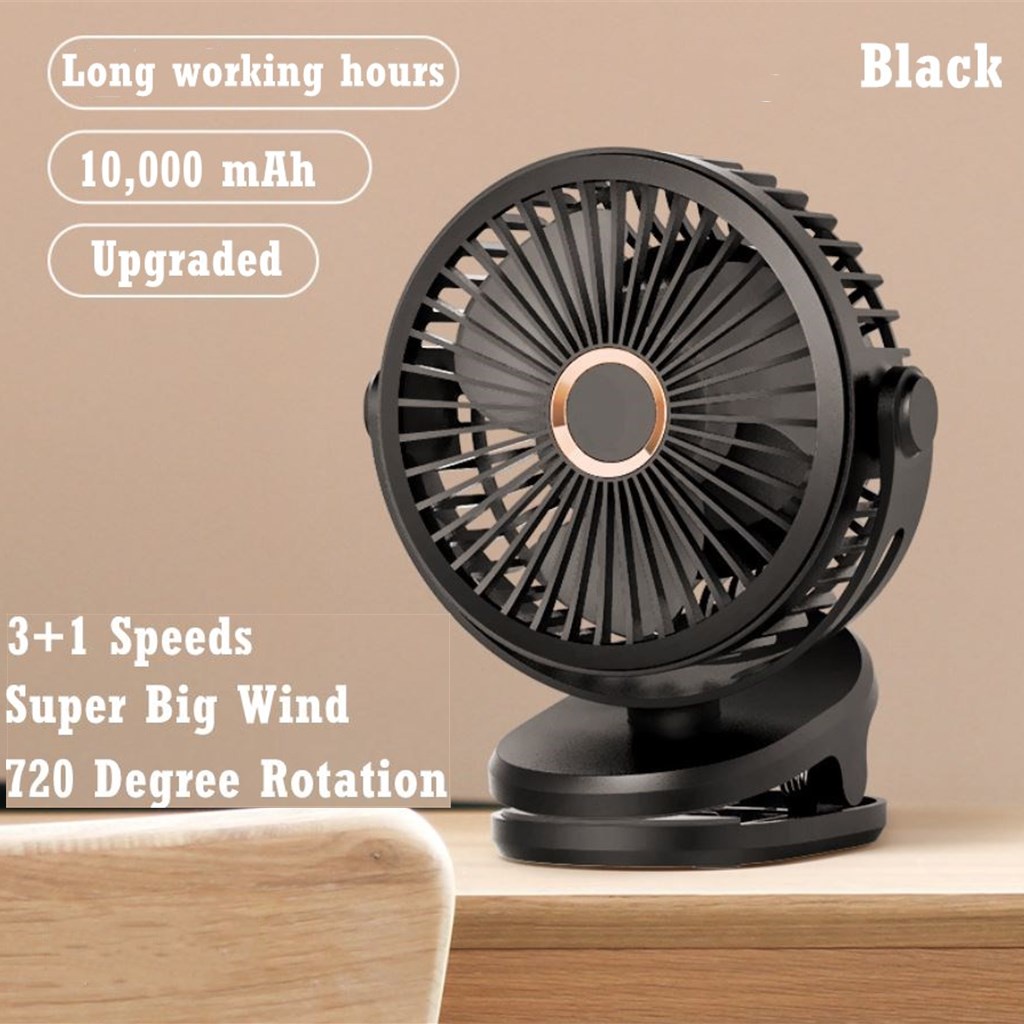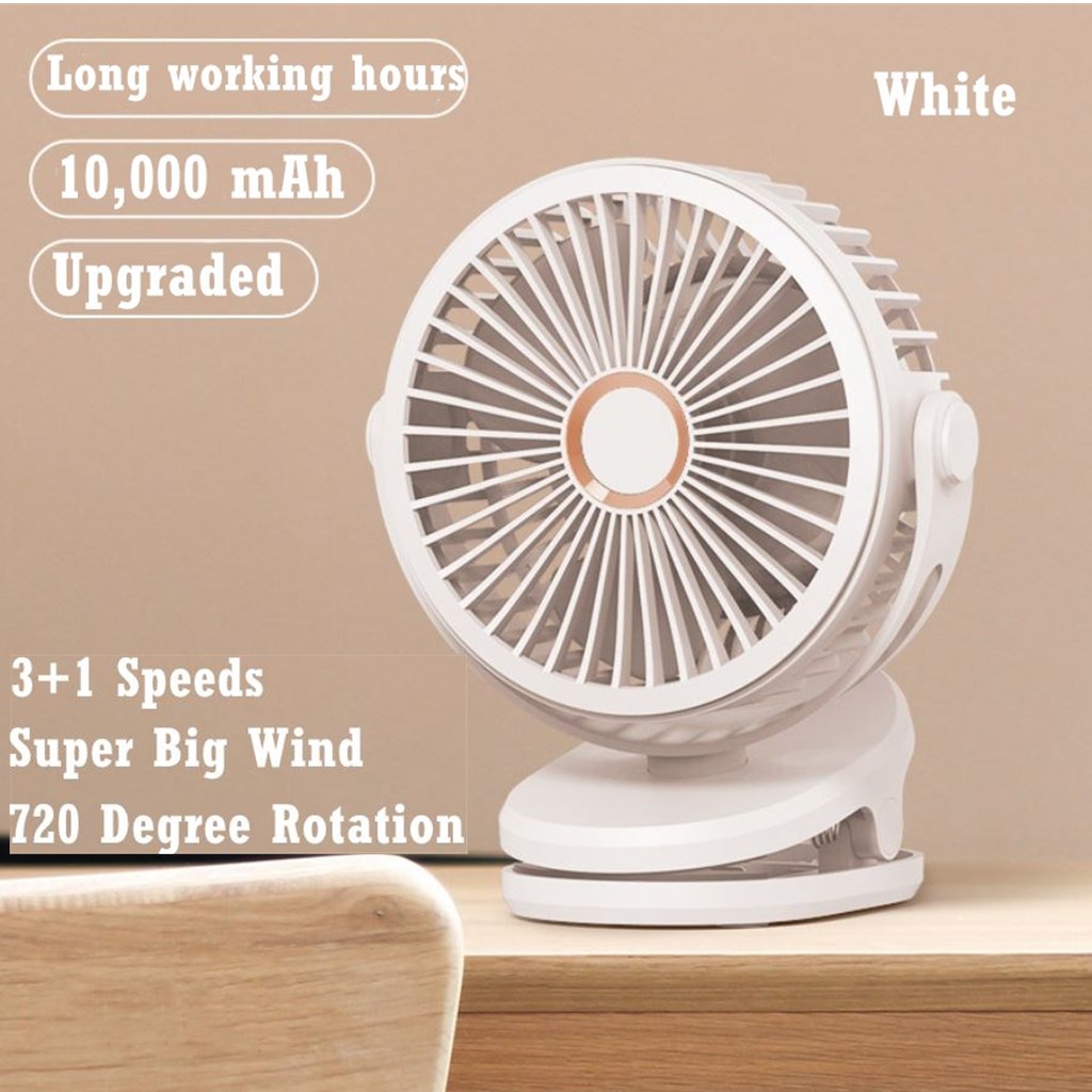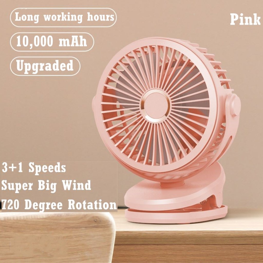 Rechargeable Portable Auto Rotate Desk Clip Fan Baby Stroller Click Fan Mini Handheld Fan 3 Speeds