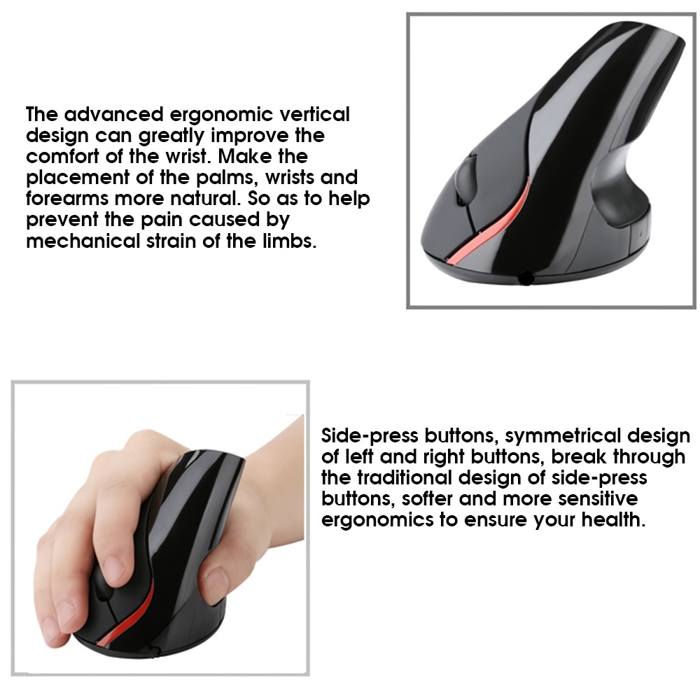 Rechargeable Right-Hand Wireless Vertical Mouse Optical Game Ergonomic Gaming Mice Adjustable 1600DPI Computer Mouse for PC &Laptop Computer