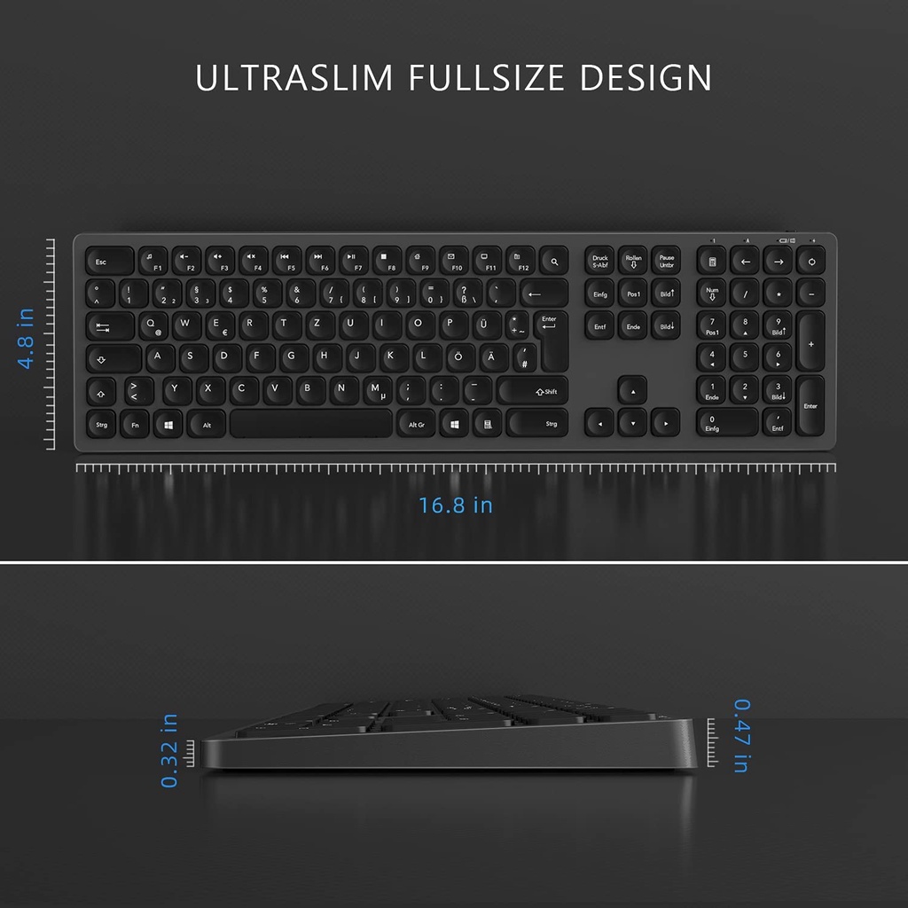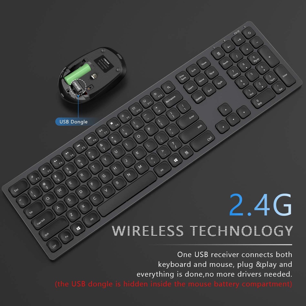 Rechargeable Wireless Keyboard Mouse Combo, seenda Ultra Quiet Full-Sized Cordless Keyboard and Mouse Set with 3 Level D