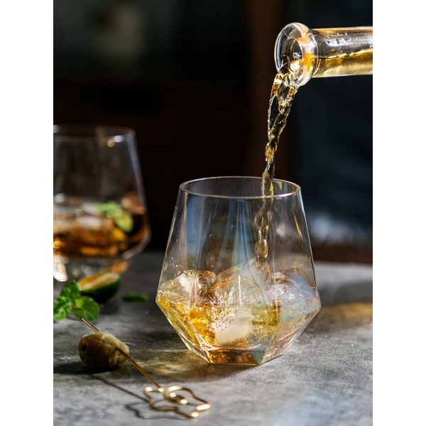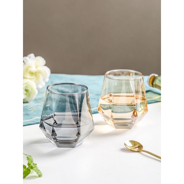 INS style Whiskey glass water cups Diamond crystal glass cup Heat-resistant