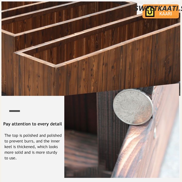Rectangular Outdoor Carbonized Anti-corrosion Wood Flower Box Extra Large Gardening Flower Trough Flower Pond Solid Wood Flower Pot Balcony Vegetable Pot Flower Holder