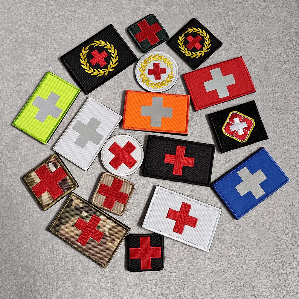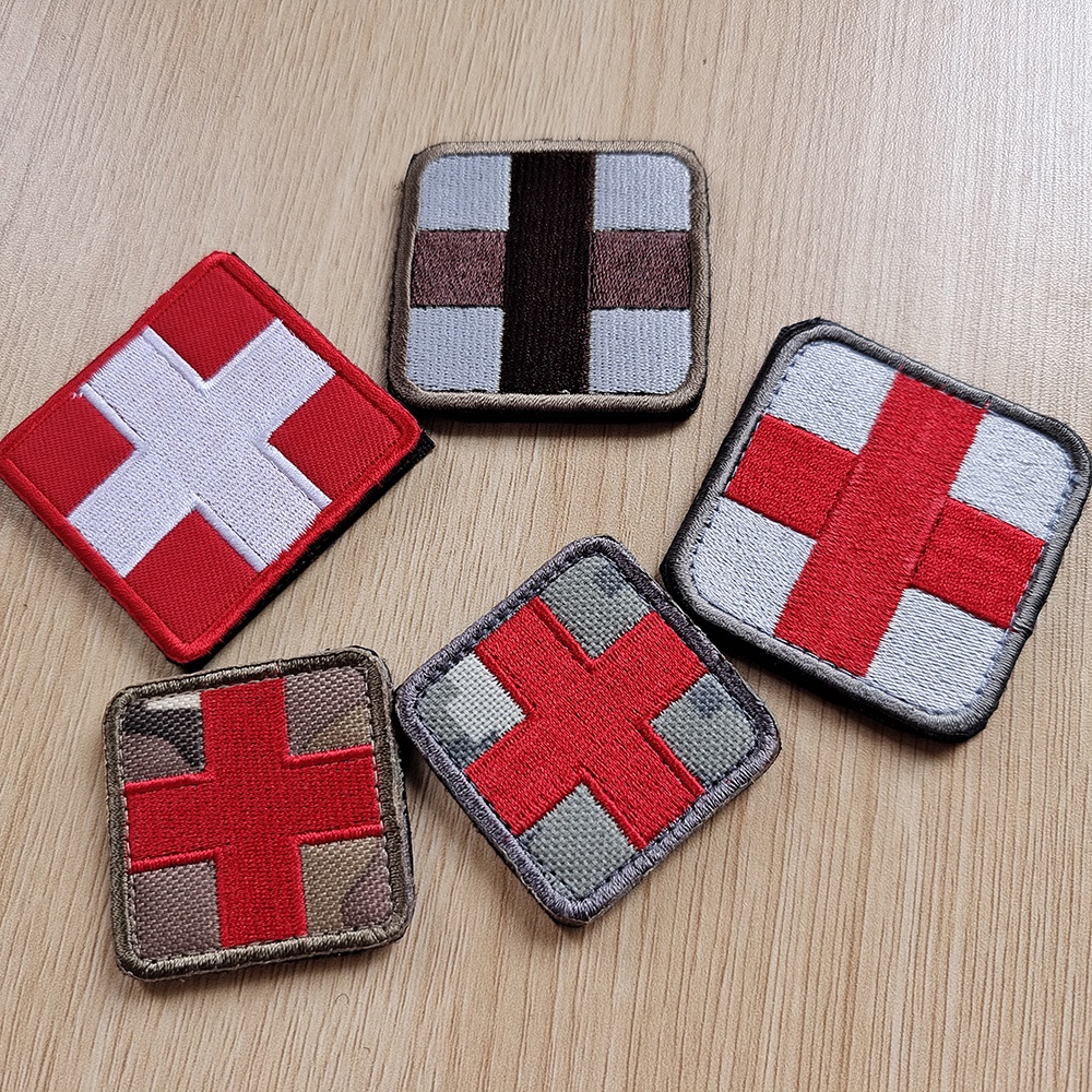 Red Cross Badge Embroidery Velcro Patch With Hook Ring Cloth Sticker Clothing Backpack Accessories Medical Rescue