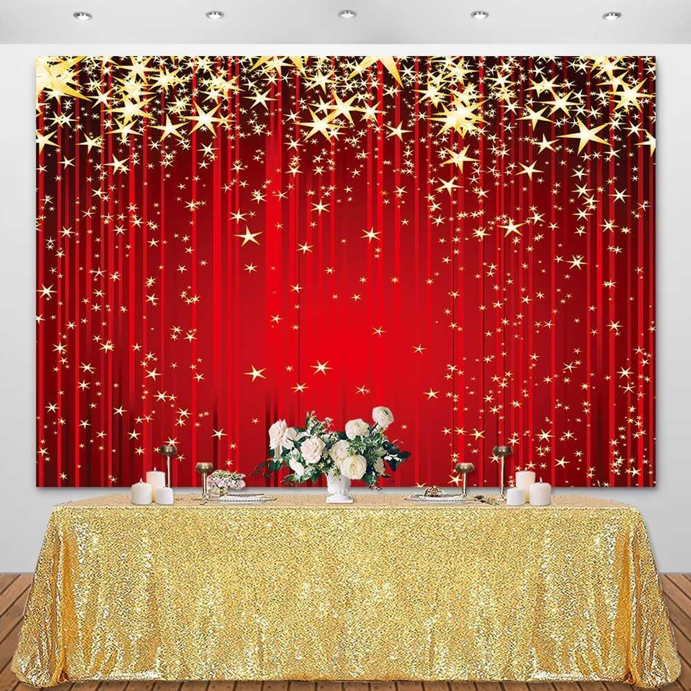 Red Curtain Gold Star Photography Backdrop Red Carpet Sparkle Glitter Stars Christmas Background VIP Hollywood Party Indian Birthday Decorations Banner Photoshoot Photo Booth Props