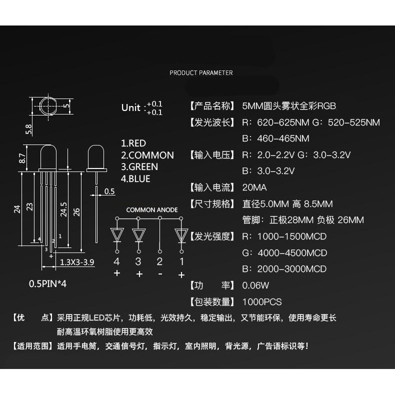 Red / Green / Blue Led Rgb Bulb Cathode / Anode Four Feet / Diode 5mm. 5 mm