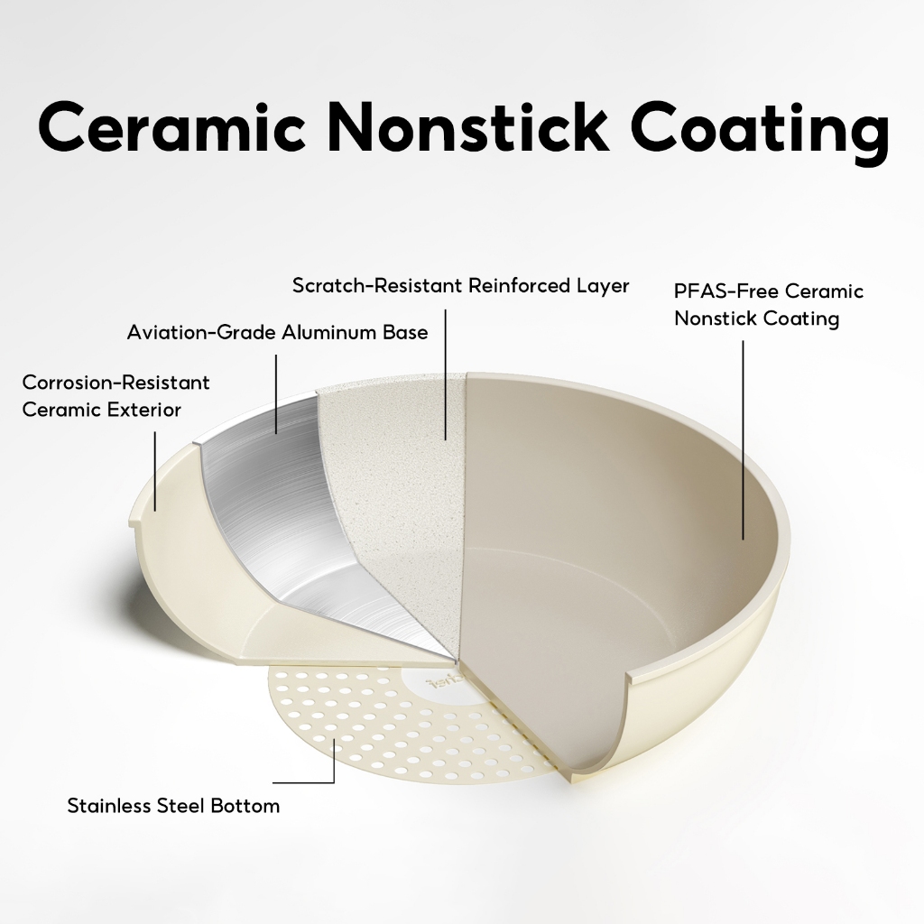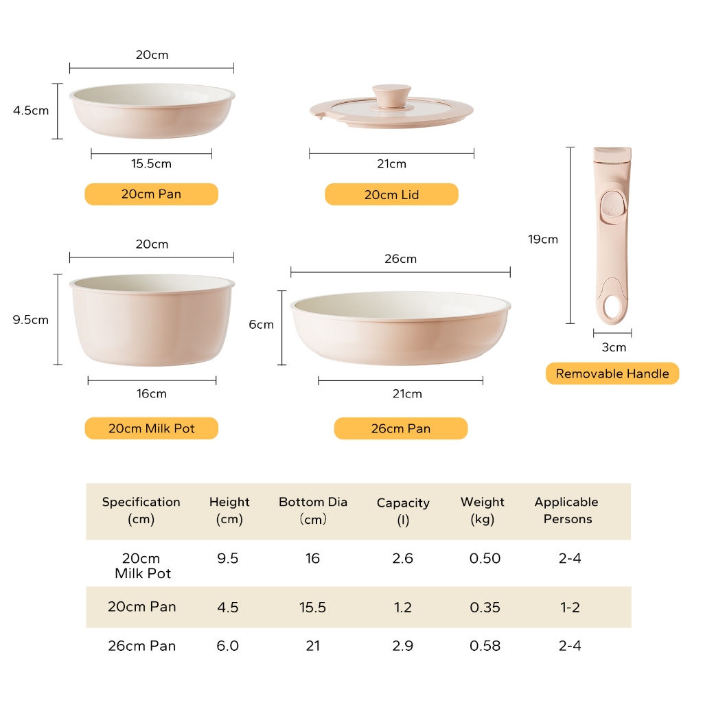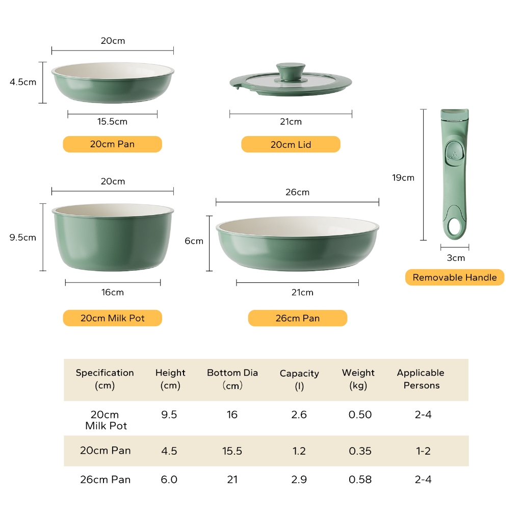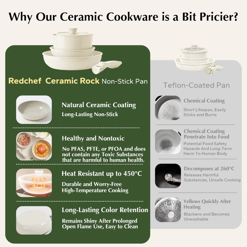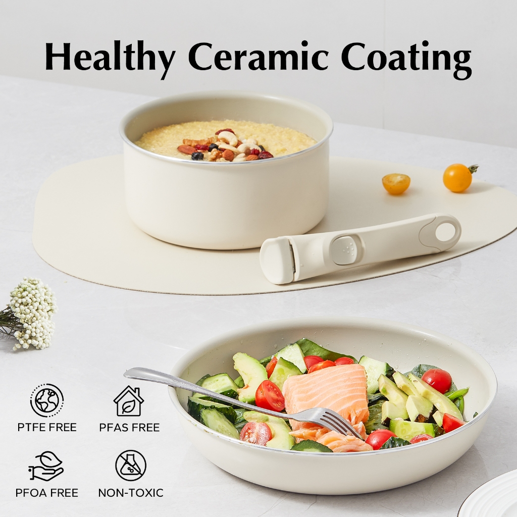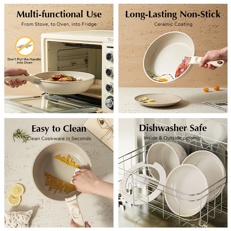 Redchef Nonstick Ceramic Rock Cookware Handle Removable 5Pcs Set Frying Pan With Lid Suitable for All Stoves including Induction Oven Pan Pot, Kitchenware, Household items