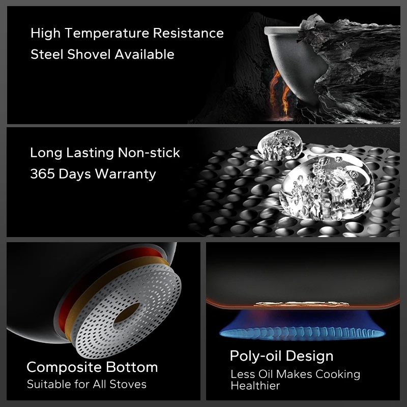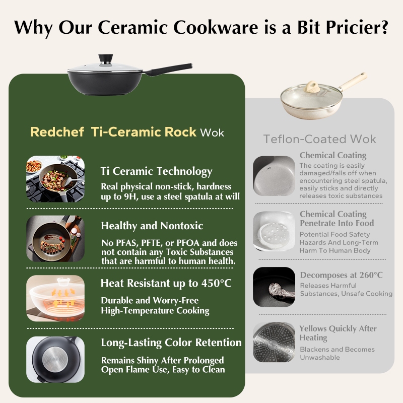Redchef Nonstick Ti-Ceramic Large Capacity Wok No PFAS& PTFE& PFOA Suitable for All Stoves Induction 28cm/30cm/32cm Deep Frying Pan