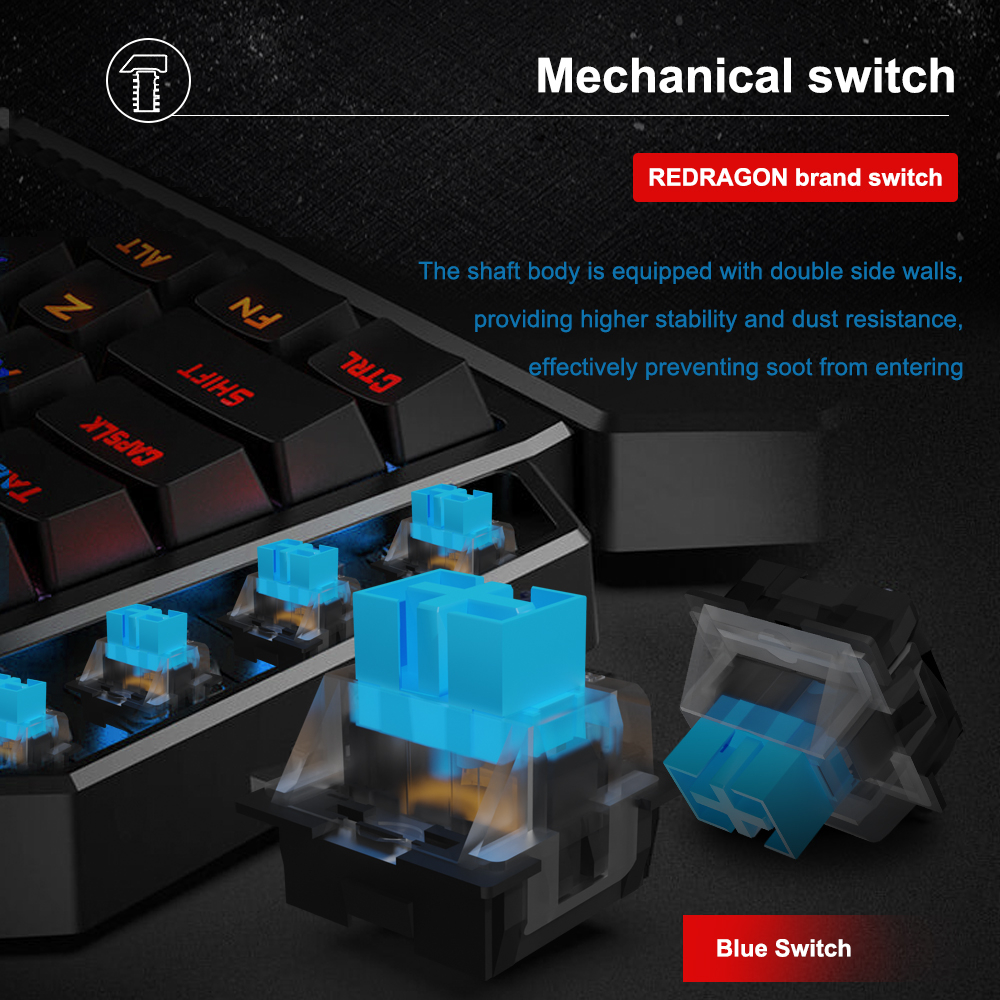 Redragon DITI ELITE K585RGB-KS 42 Key 2.4Ghz Wireless One-handed Mechanical Gaming Keyboard Blue Switch 7 programmable macro keys