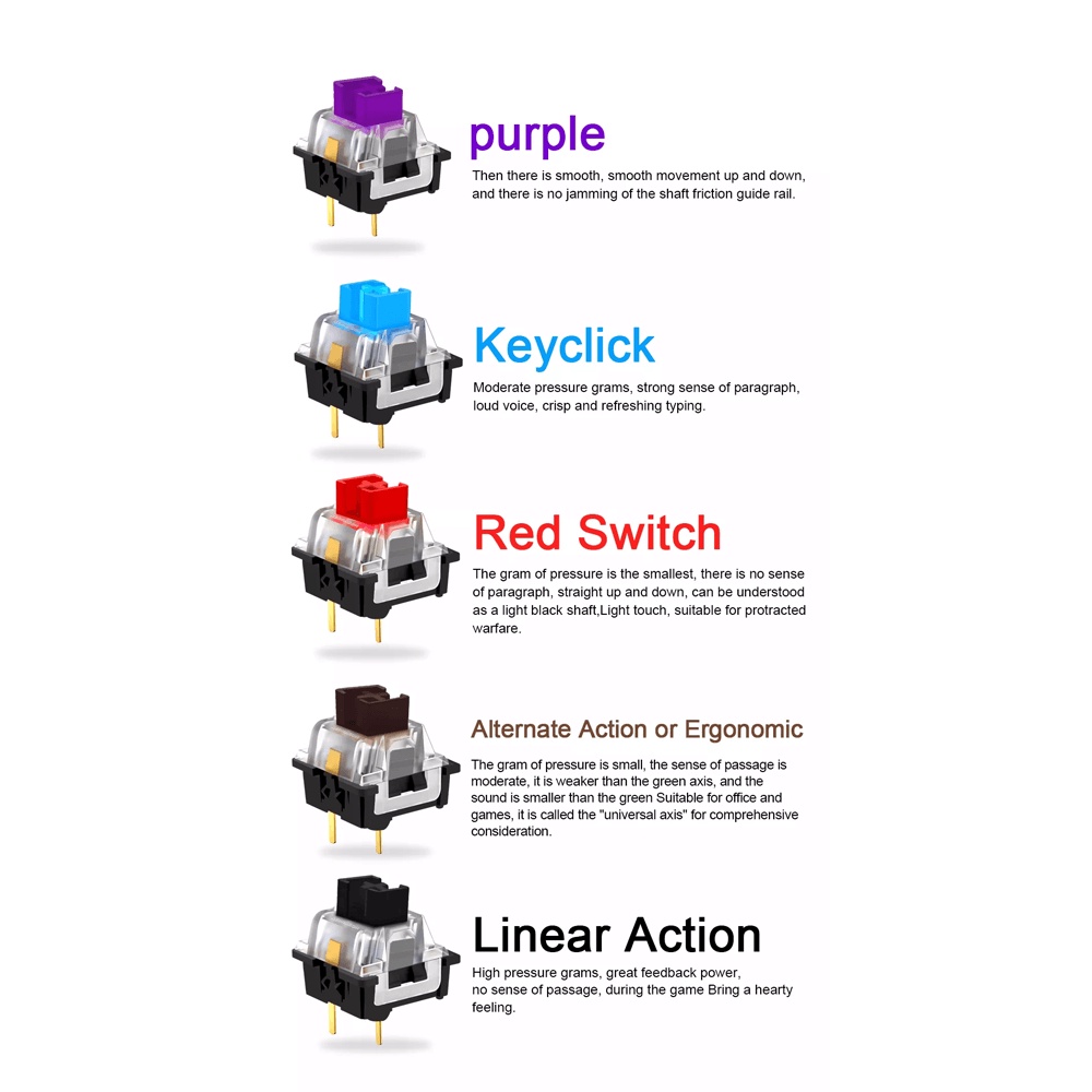 Redragon and Outemu Switches 3 Pin Hotswap Red Switch Blue Switch Brown Switch Black Switch Purple Switch