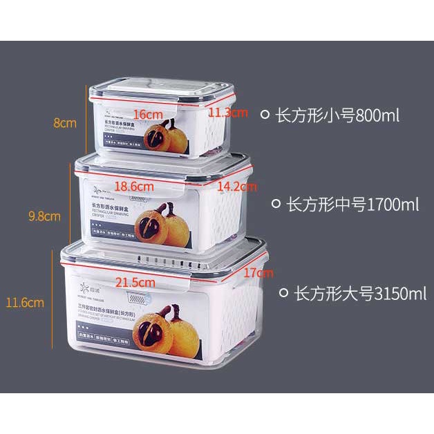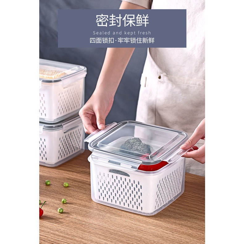 Refrigerator food storage containers with lids kitchen storage seal box drain water