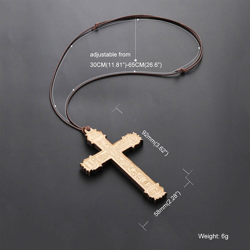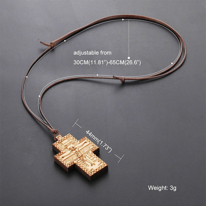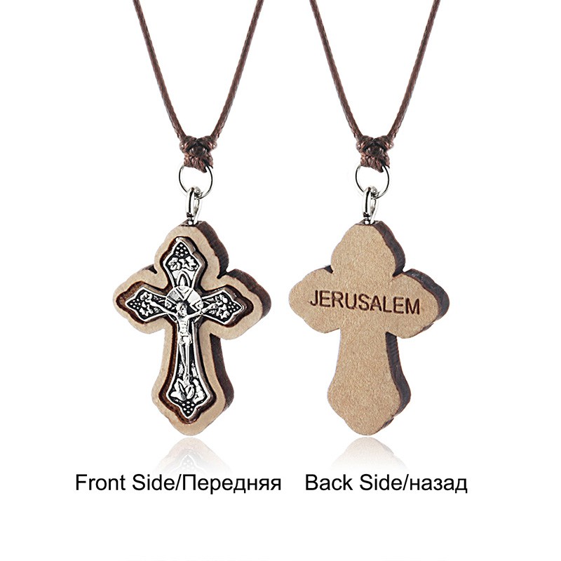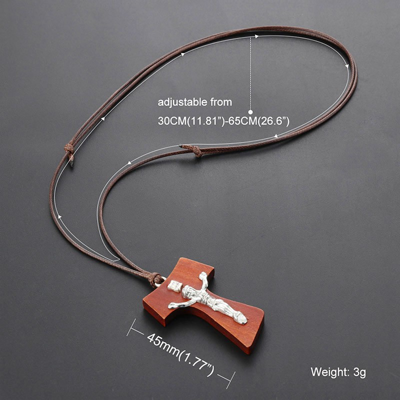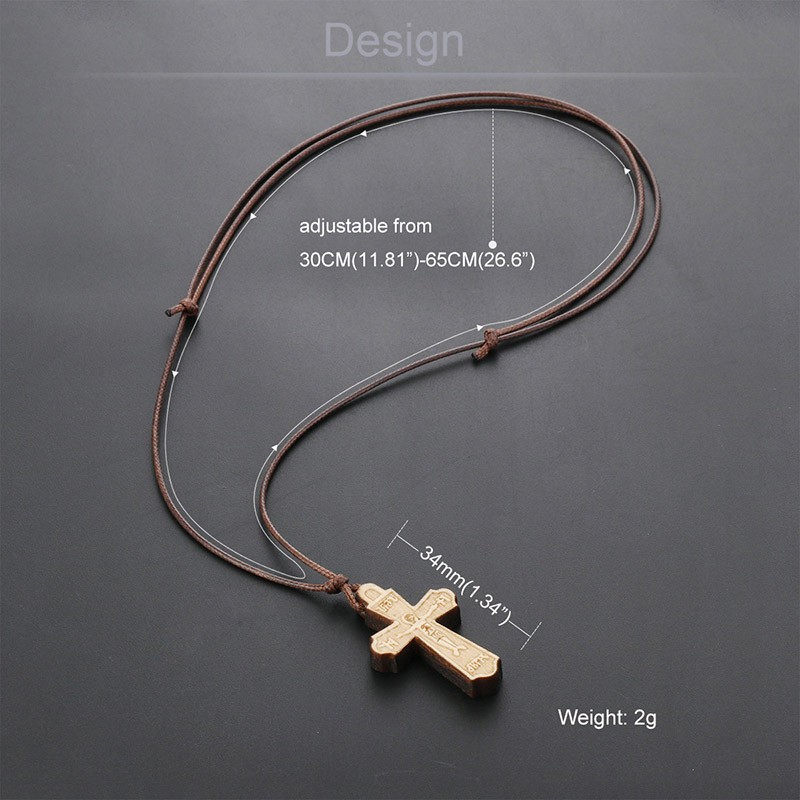 Religious Catholic Jesus Wooden Cross Pendant Necklaces Adjustable Rope Chains
