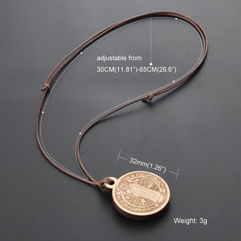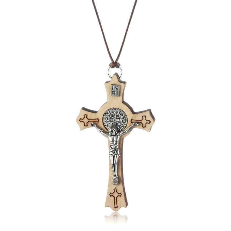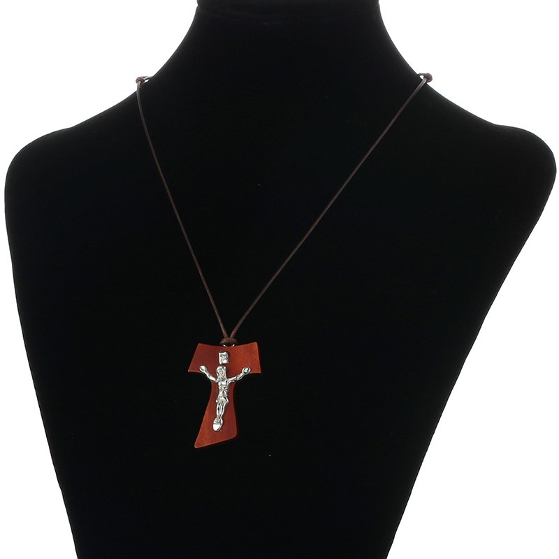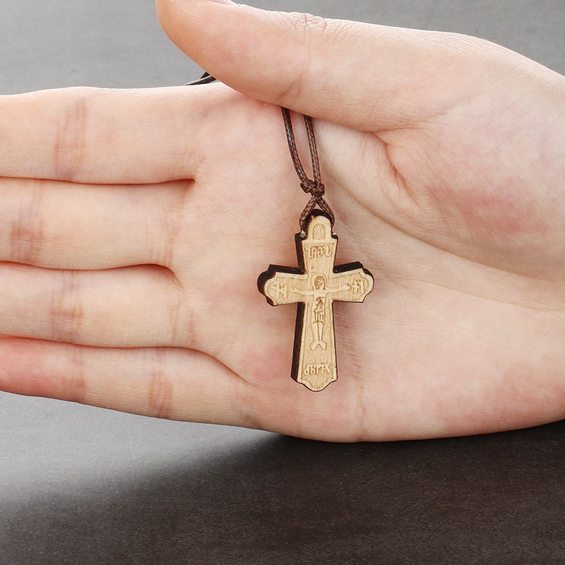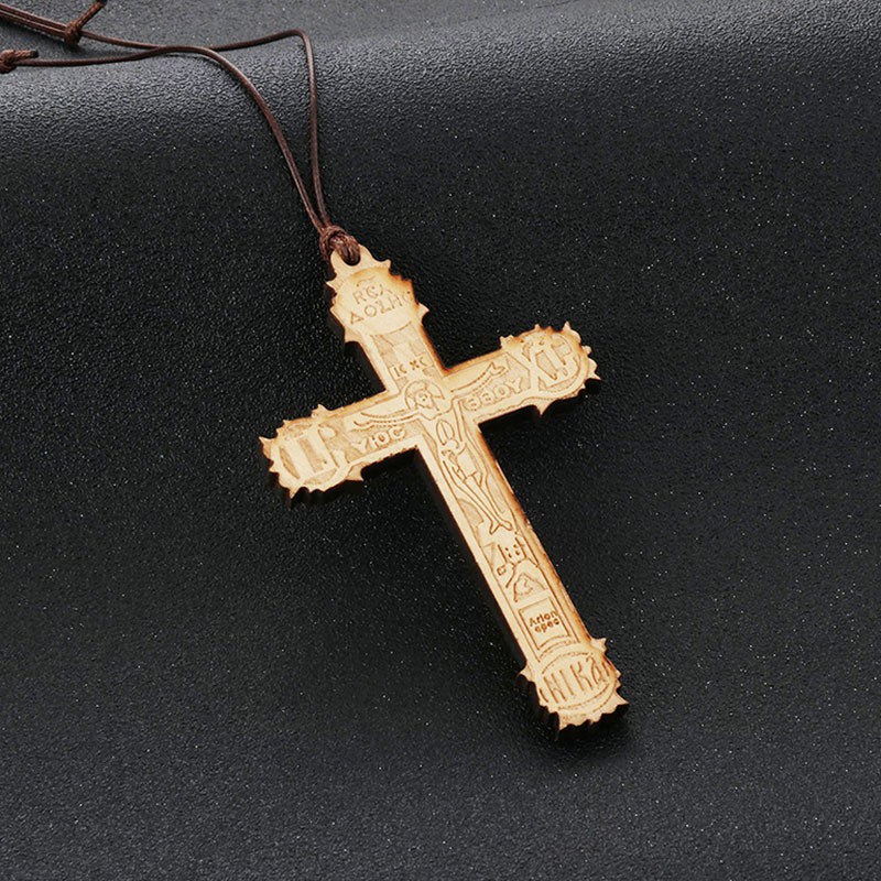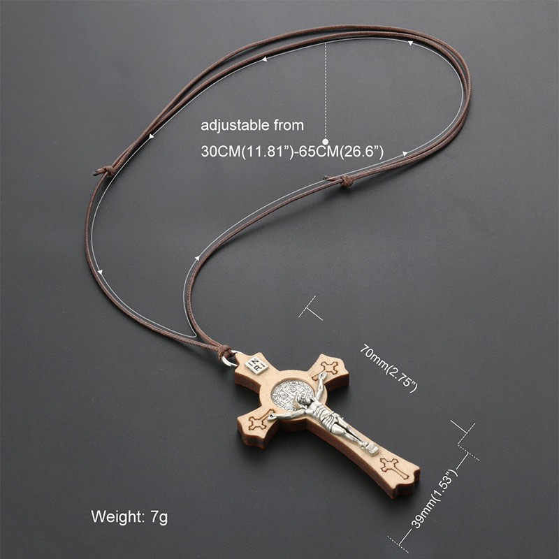 Religious Catholic Jesus Wooden Cross Pendant Necklaces Adjustable Rope Chains