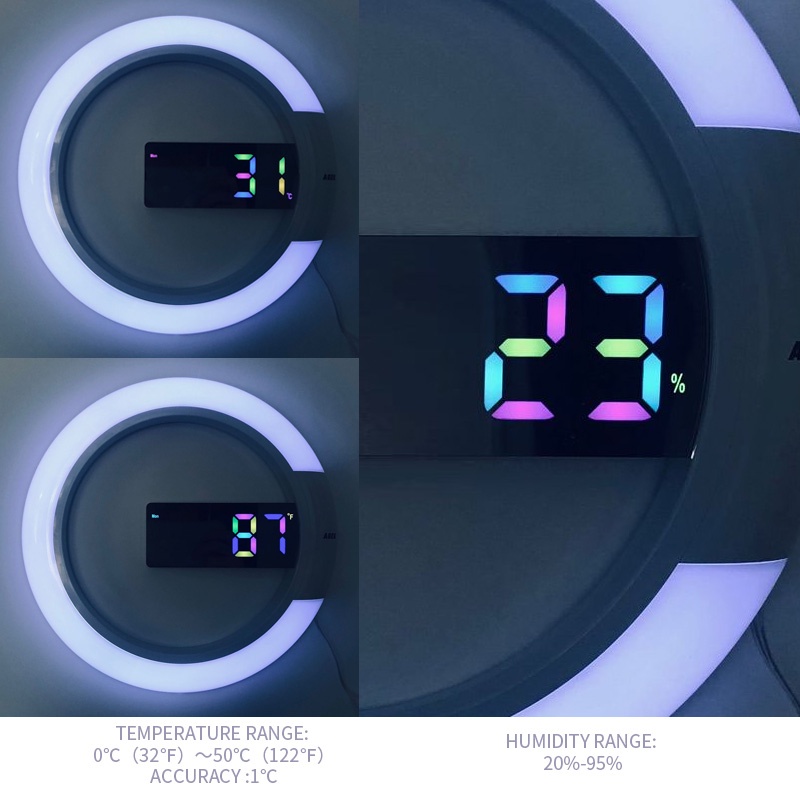 Remote Control Digital Wall Clock Creative LED RGB Alarm Clock with Colorful Ring Light Week Dual Alarms Temperature Humidity Electronic Clock