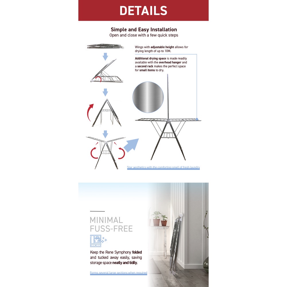 Rene High Quality Symphony Stable & Solid Stainless Steel Clothes Dryer (Laundry Dryer) Drying Rack (Indoor/Outdoor)