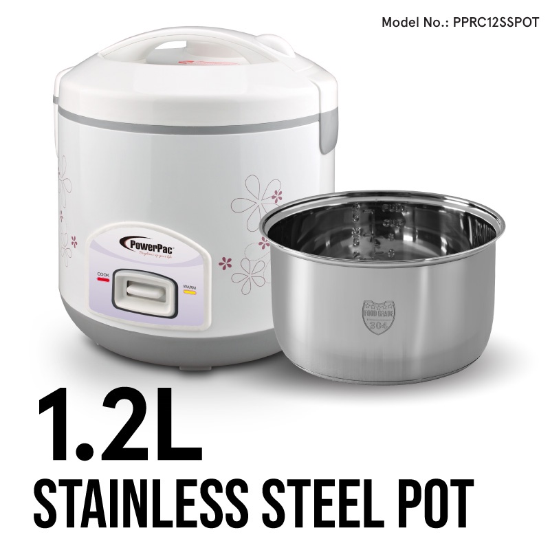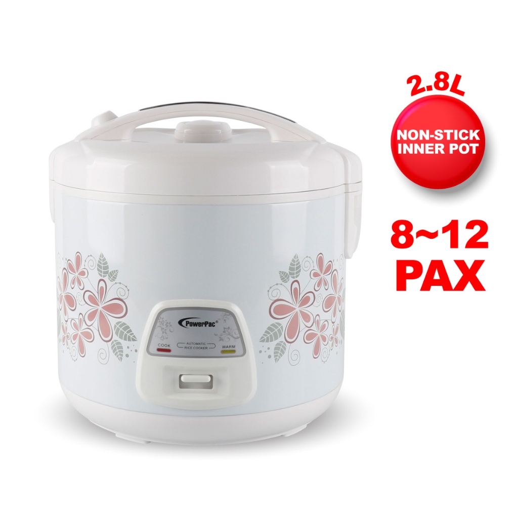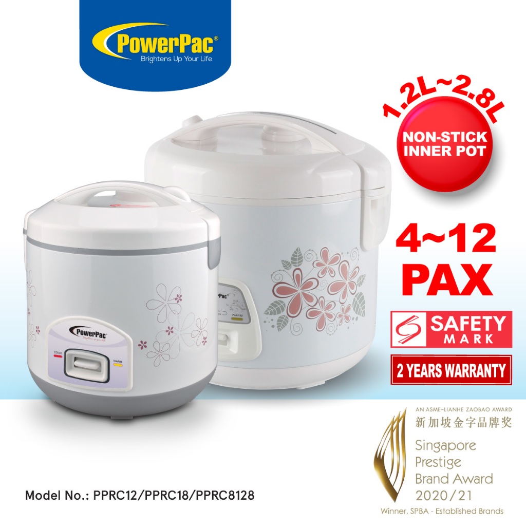PowerPac RiceCooker with Steamer, Rice Cooker With Non-stick Pot 1.2L/1.8L/2.8L (PPRC12/PPRC18/PPRC8128)