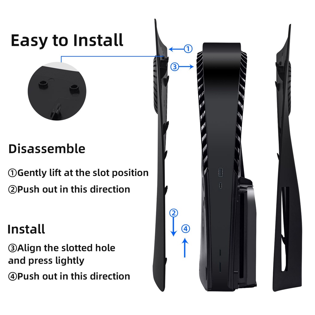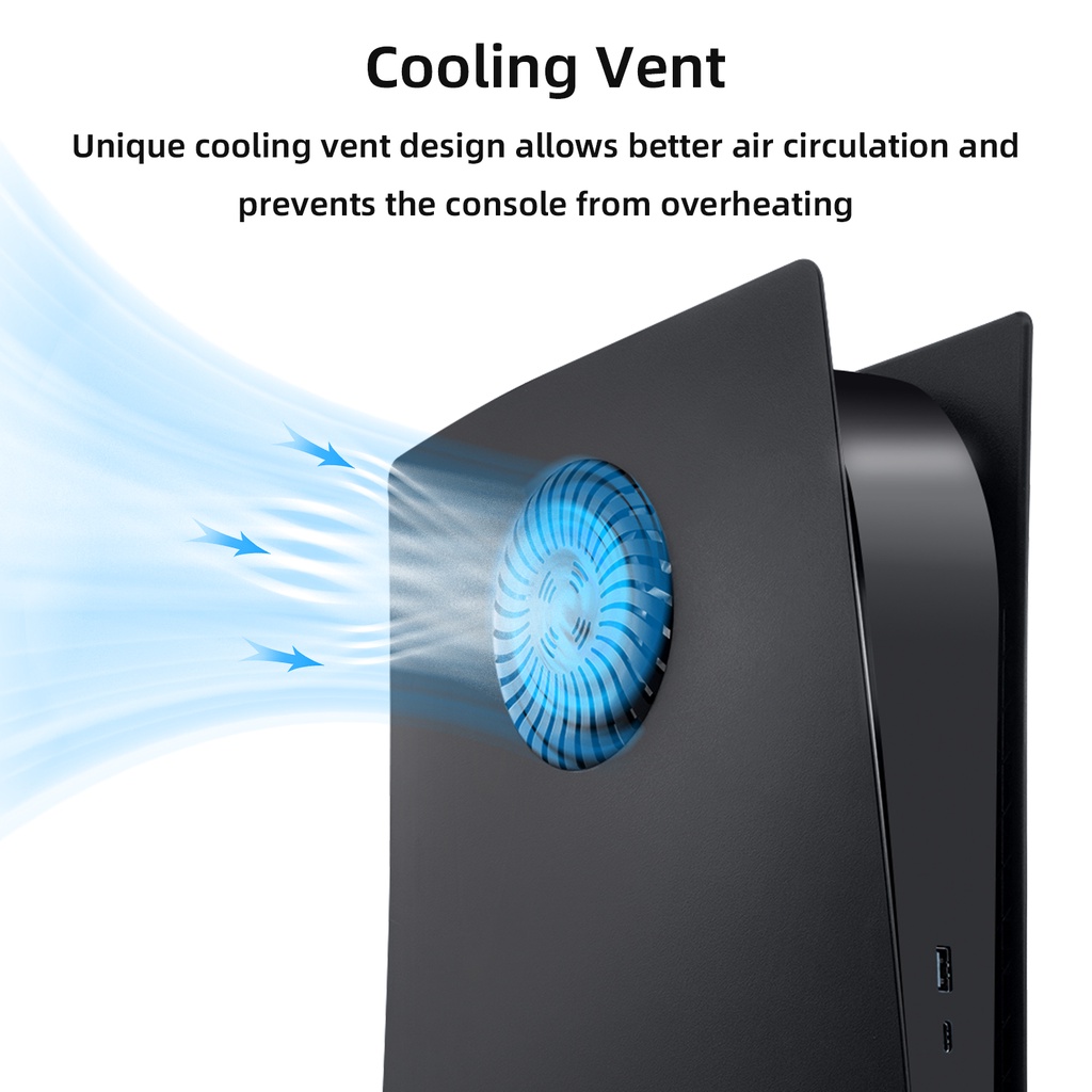 Replacement Face Plate with Cooling Vent for PS5 Disc Edition - Black (Not for PS5 Slim/PS5 Pro)