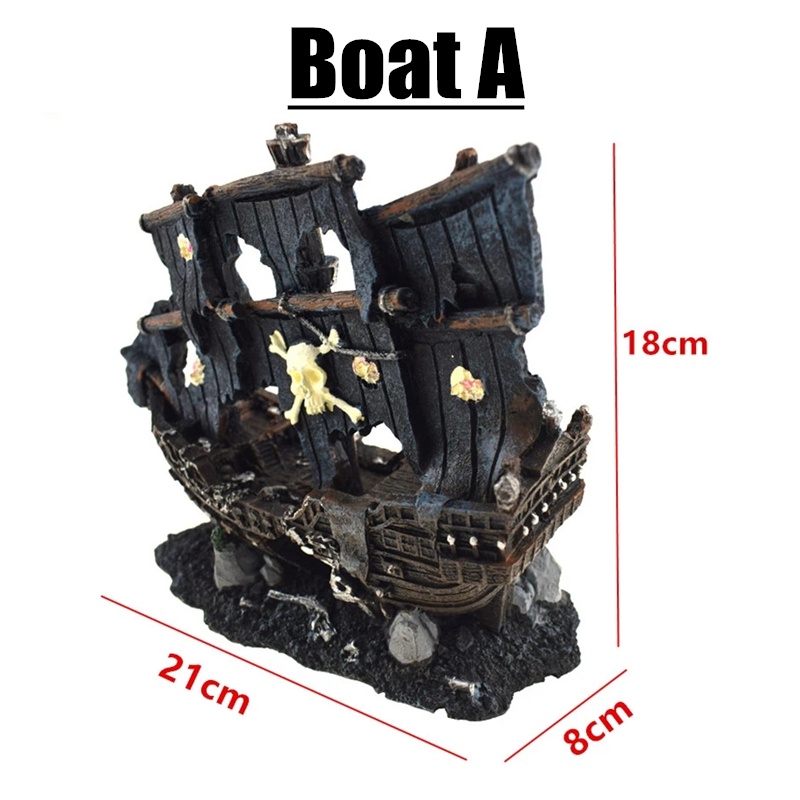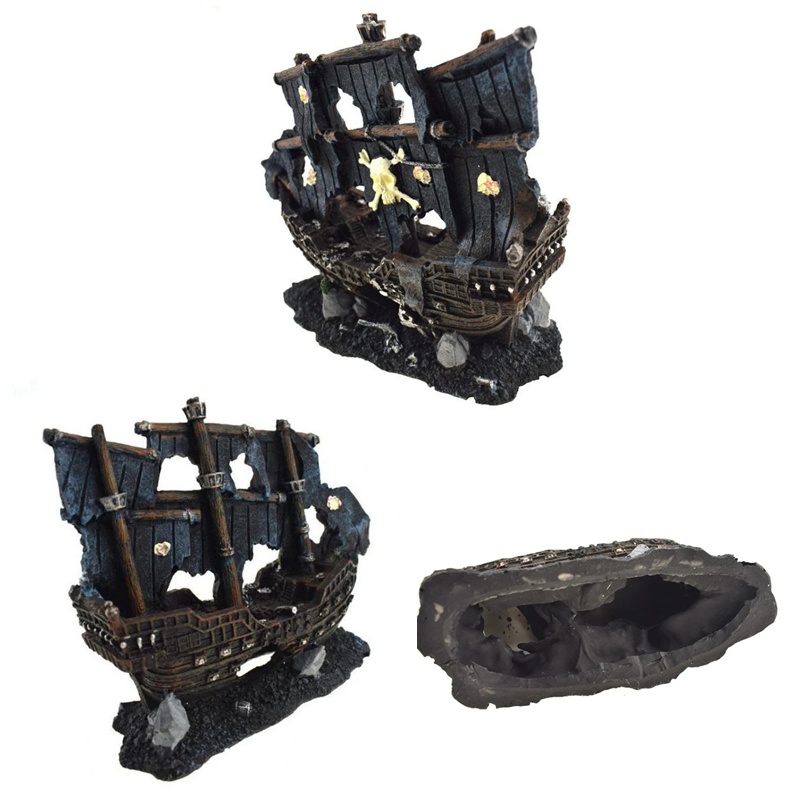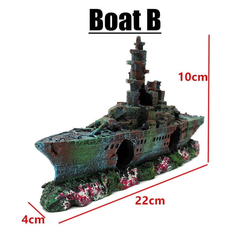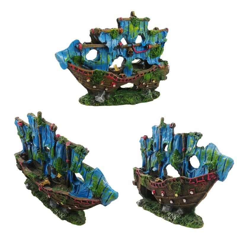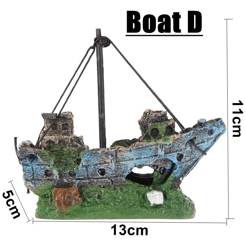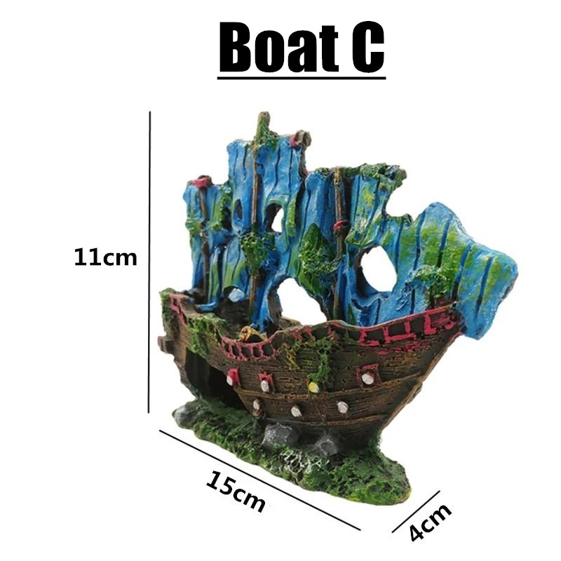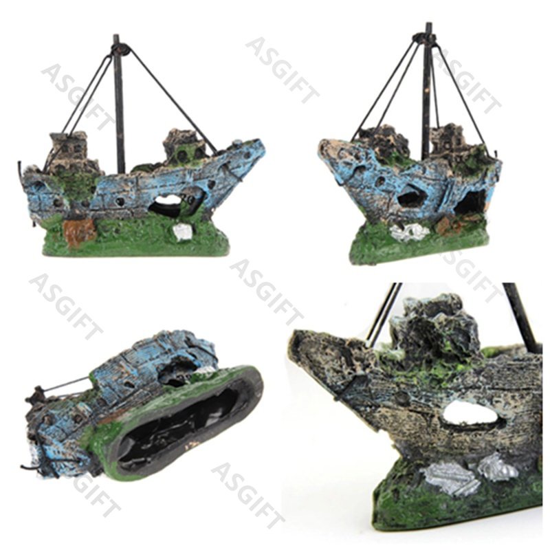 Resin Artificial Aquarium Sunk Boat Decoration Fish Tank Ship Wreck Ornament For Fish Shrimp Cave Stone Rock