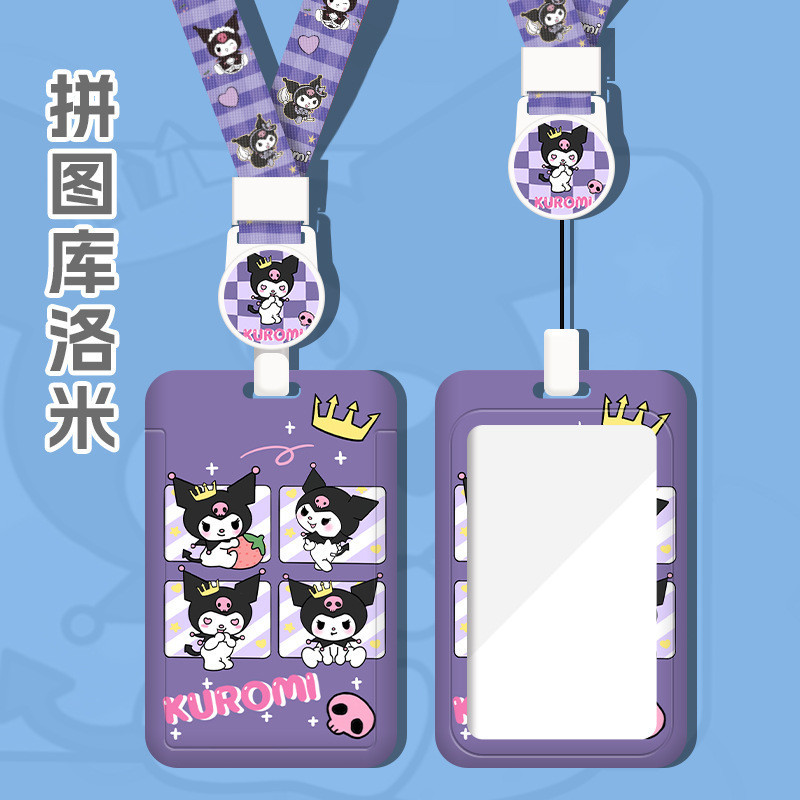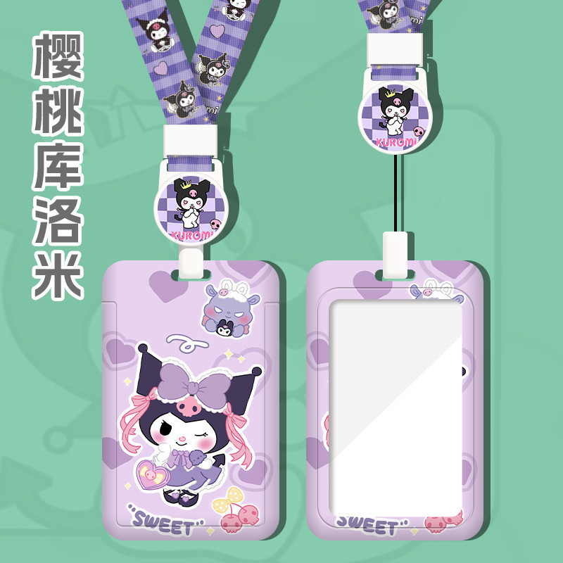 Retractable Buckle Easy Pull Buckle Long Lanyard Name Tag Kuromi Student Card Holder Bank ID Card Holder Subway Bus Card Holder CYZF
