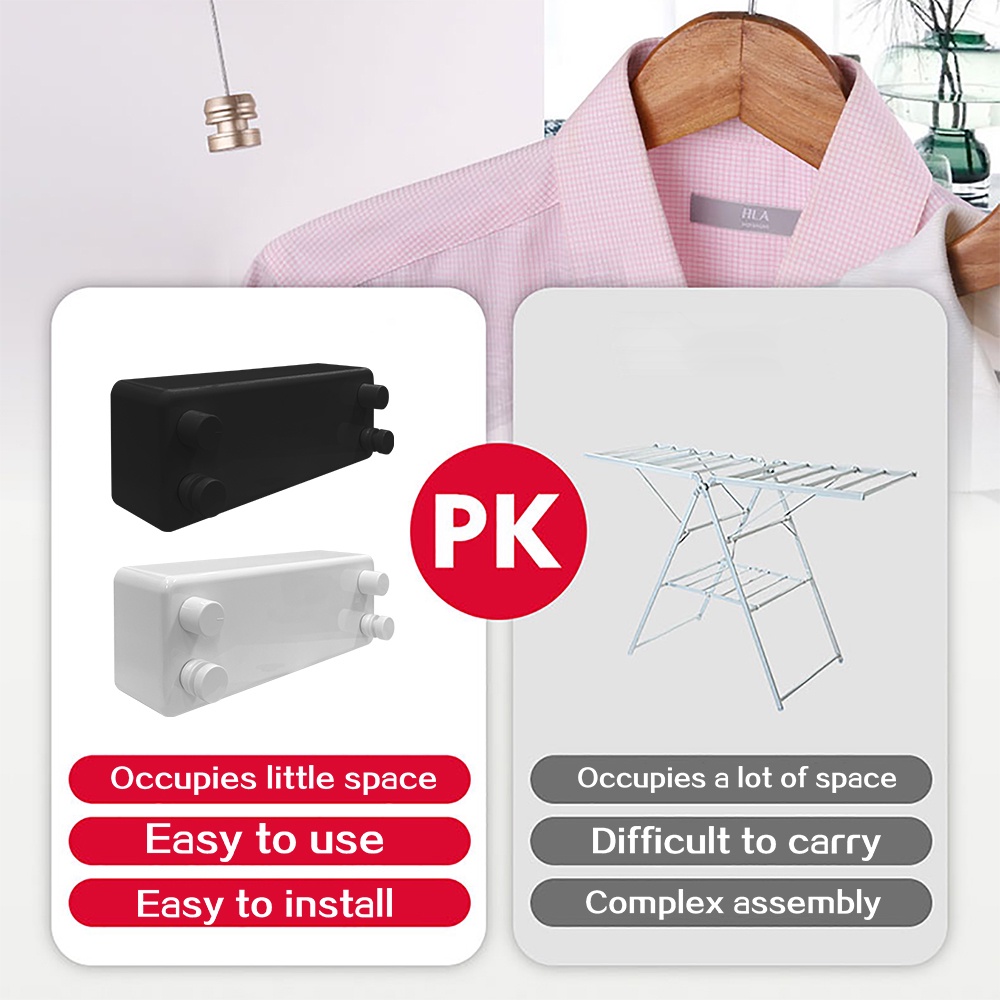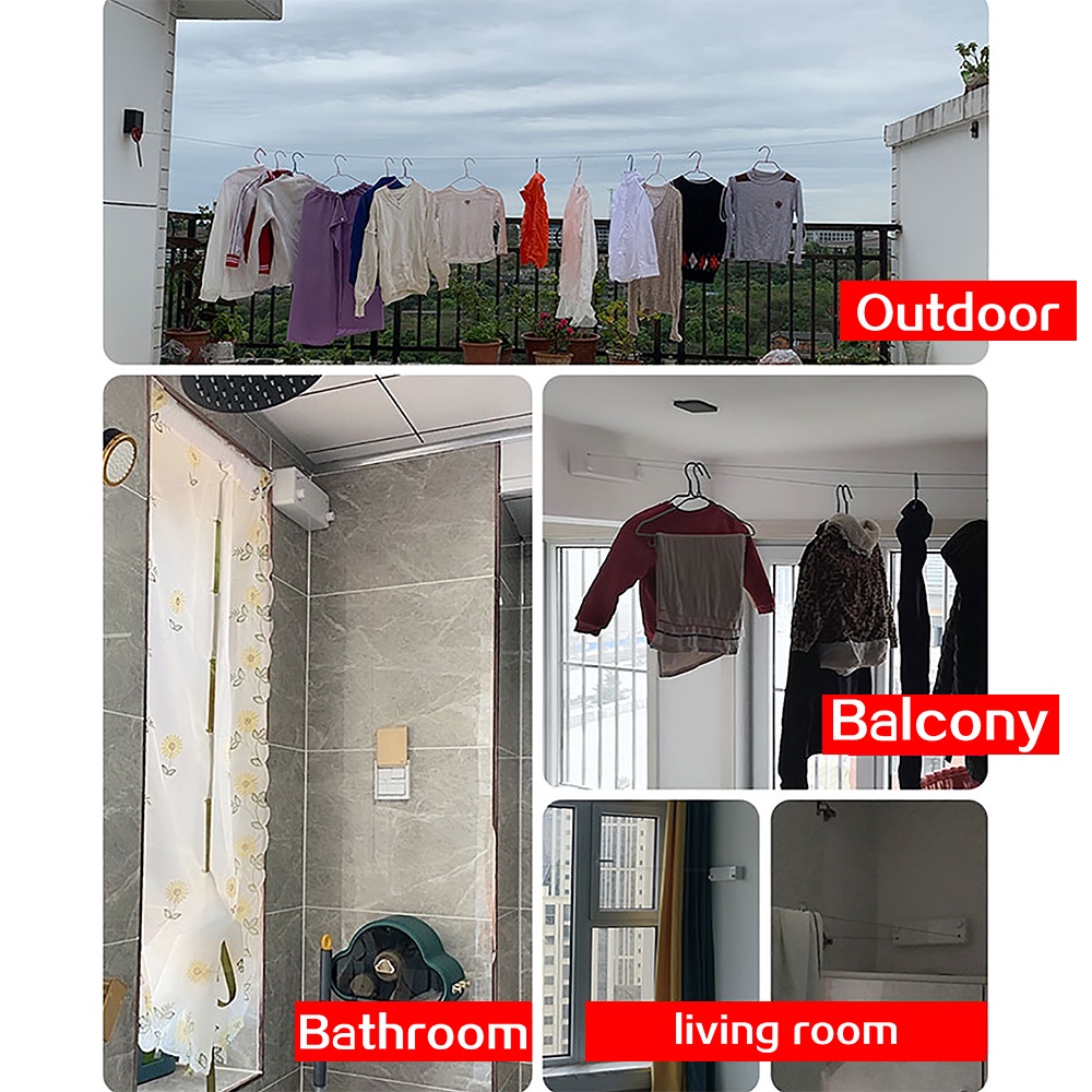Retractable Clothesline Clothes Hanger Stainless Steel String Dryer Hanging Clothes Line Home Indoor Wall Mounted Rope