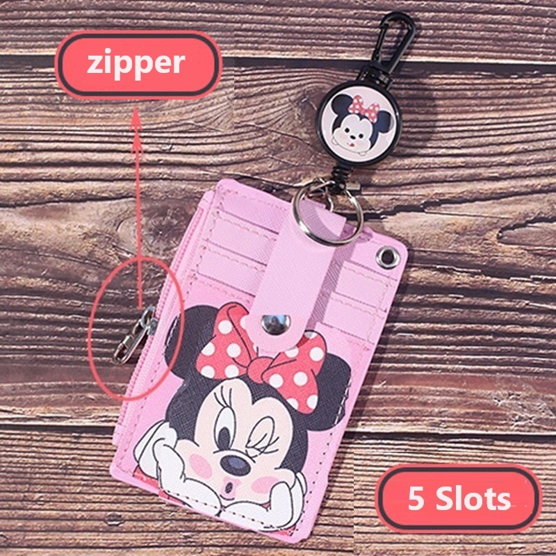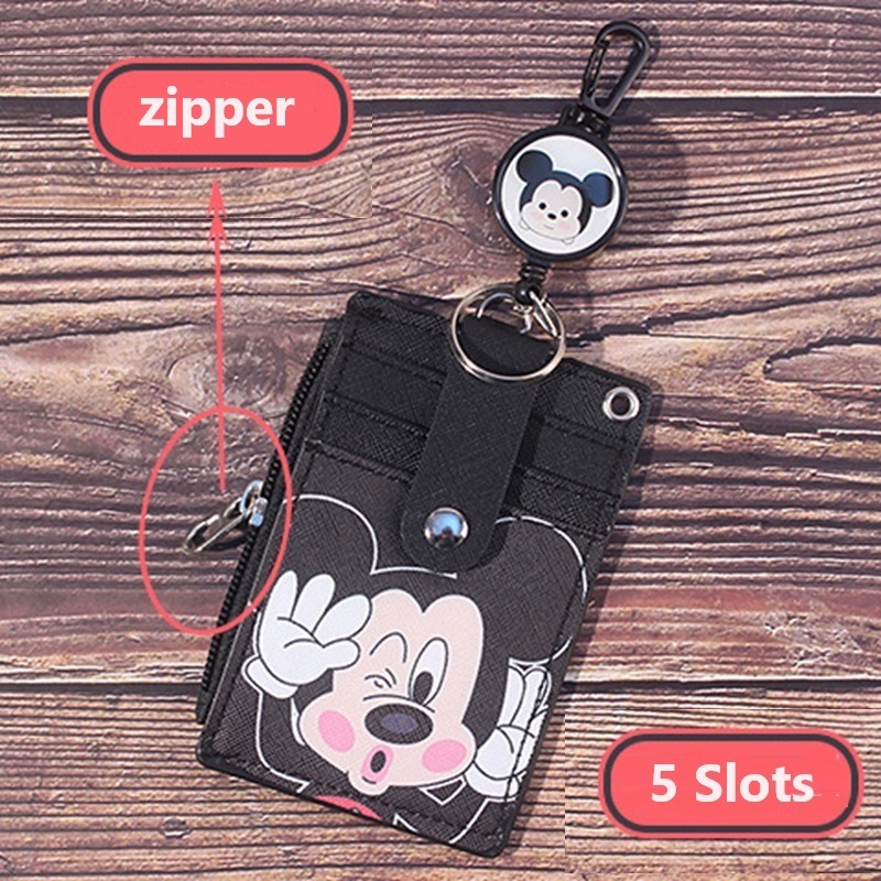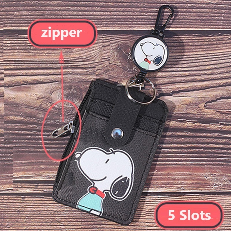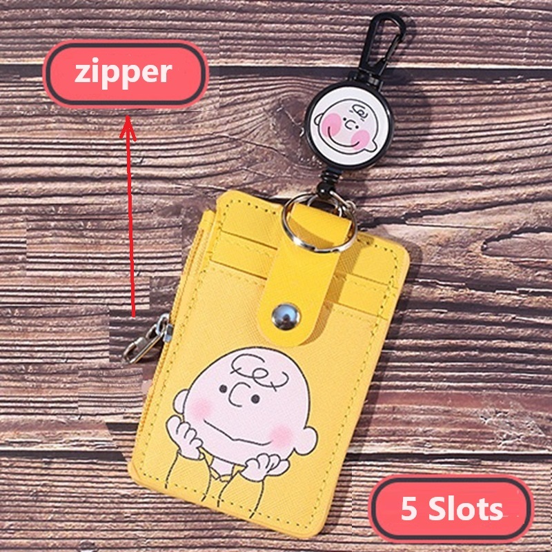 Retractable Lanyard Ezlink Card Holder ID Card Holder with Zipper Pocket with 5 card slots