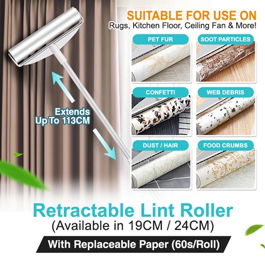 Retractable Lint remover with Replaceable Paper Long Handle Roller Dust Cleaner Clothes Carpet Hair