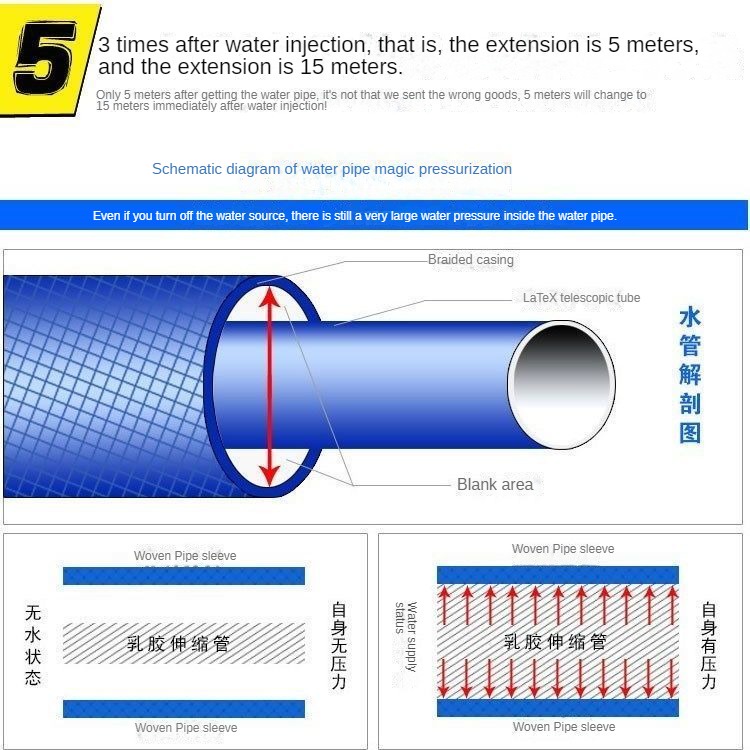 Retractable Water Pipe Car Wash Hose Household Flush Water Pipe Watering Tool Explosion-Proof Easy Storage Magic Pipe