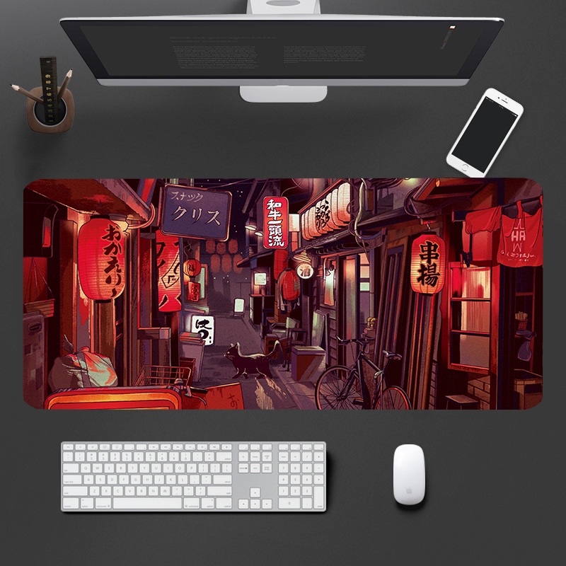 Retro Mousepad Neon Tokyo Street Pixel Art Purple Japanese Anime Skyline/city Desk Mat Xxl Gaming Mouse Pad Multiple Sizes