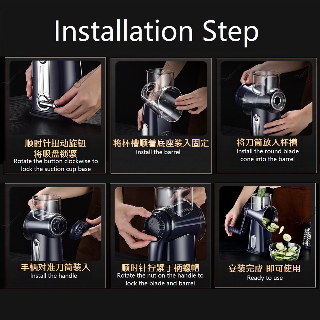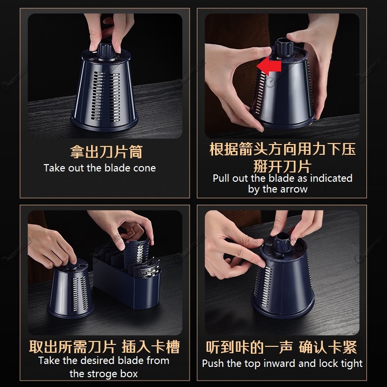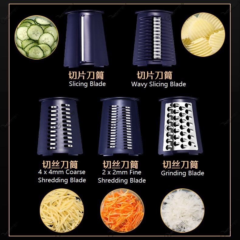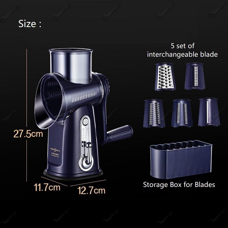 Retro Style 7 in 1 Multifunctional Rotary Vegetable Slicer Grater Chopper Cutter with 5 types Interchangeable Blade