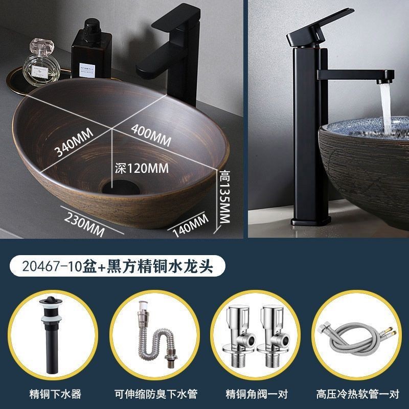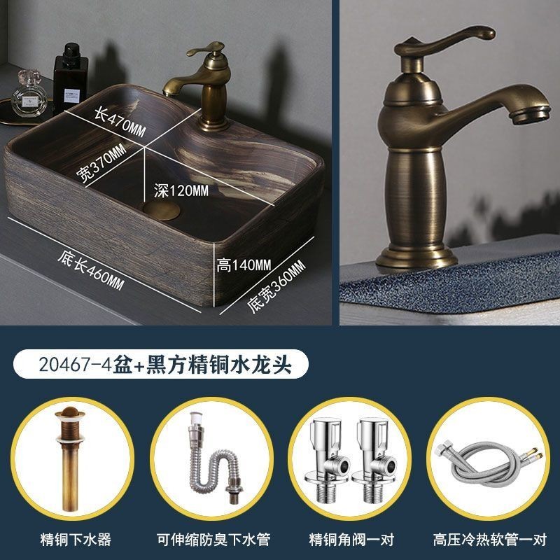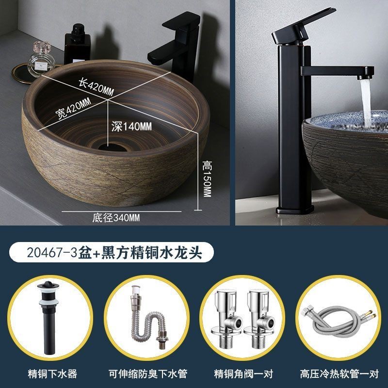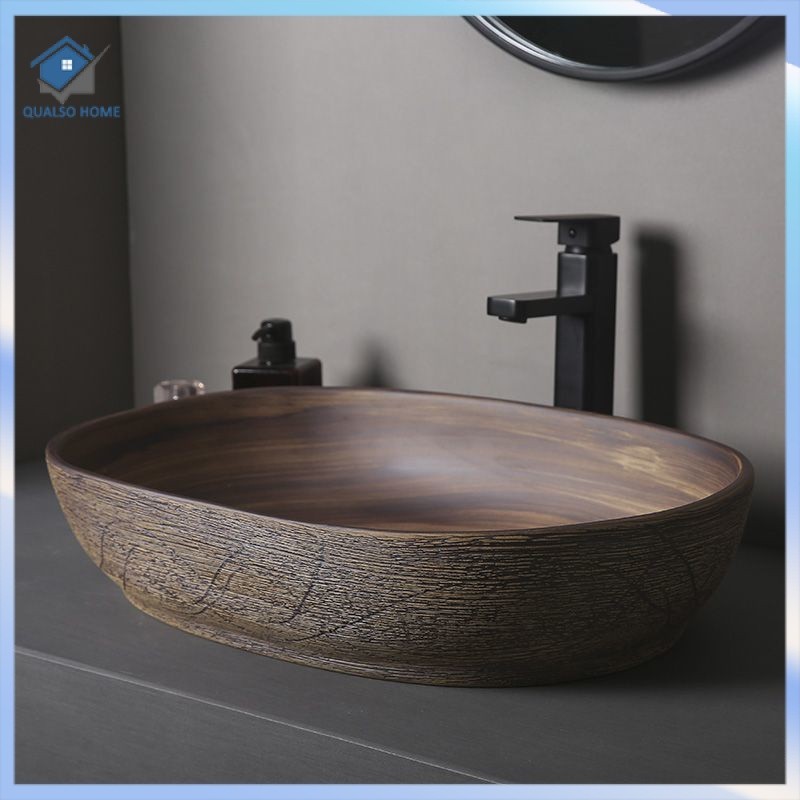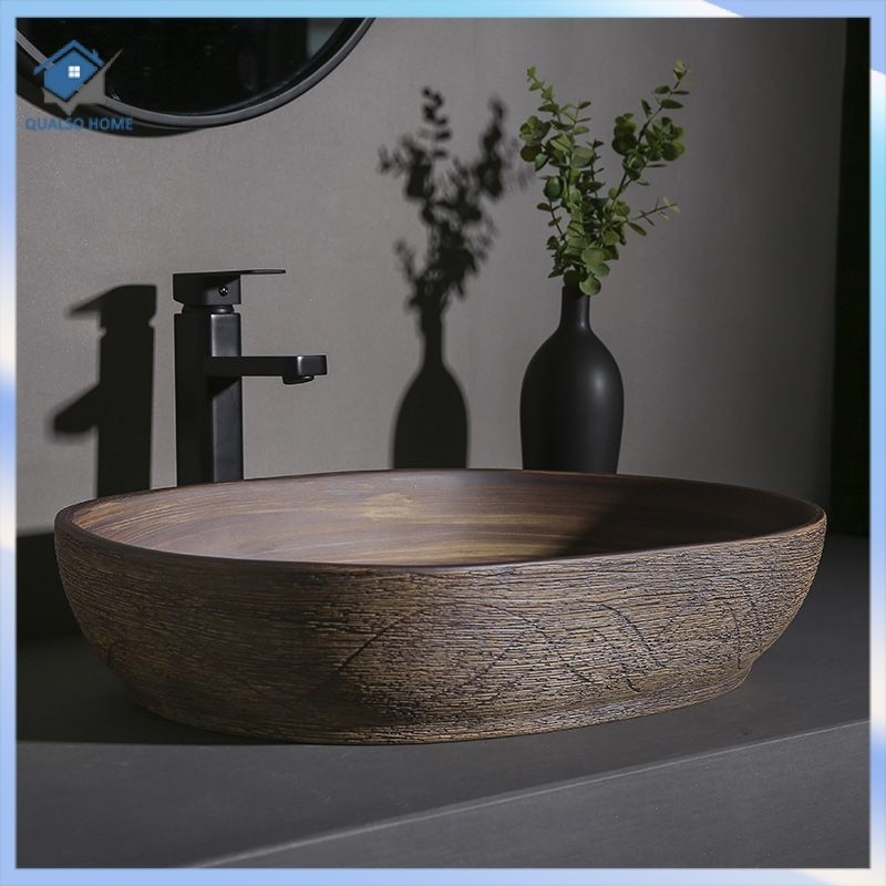 Retro Table Basin Outdoor Wash Basin Courtyard Art Basin Bathroom Ceramic Washbasin Balcony Wash Basin Home