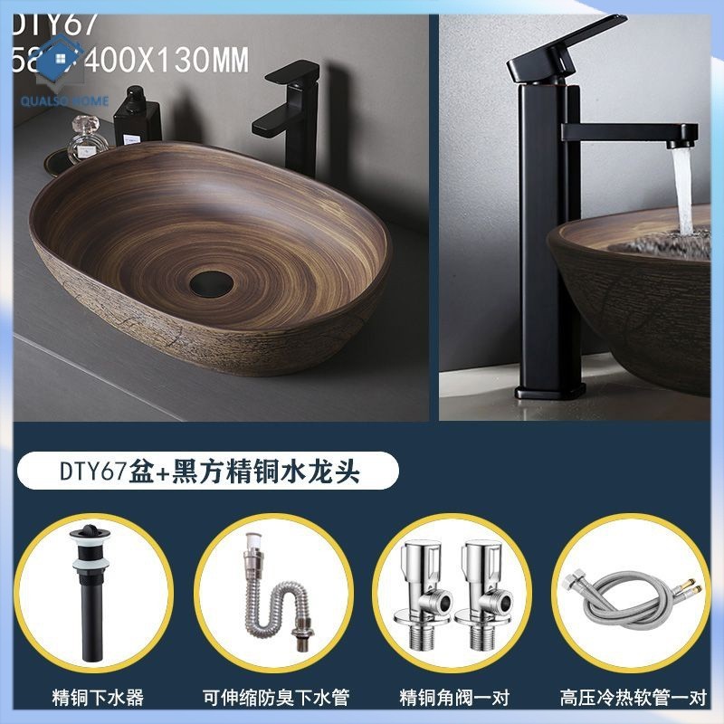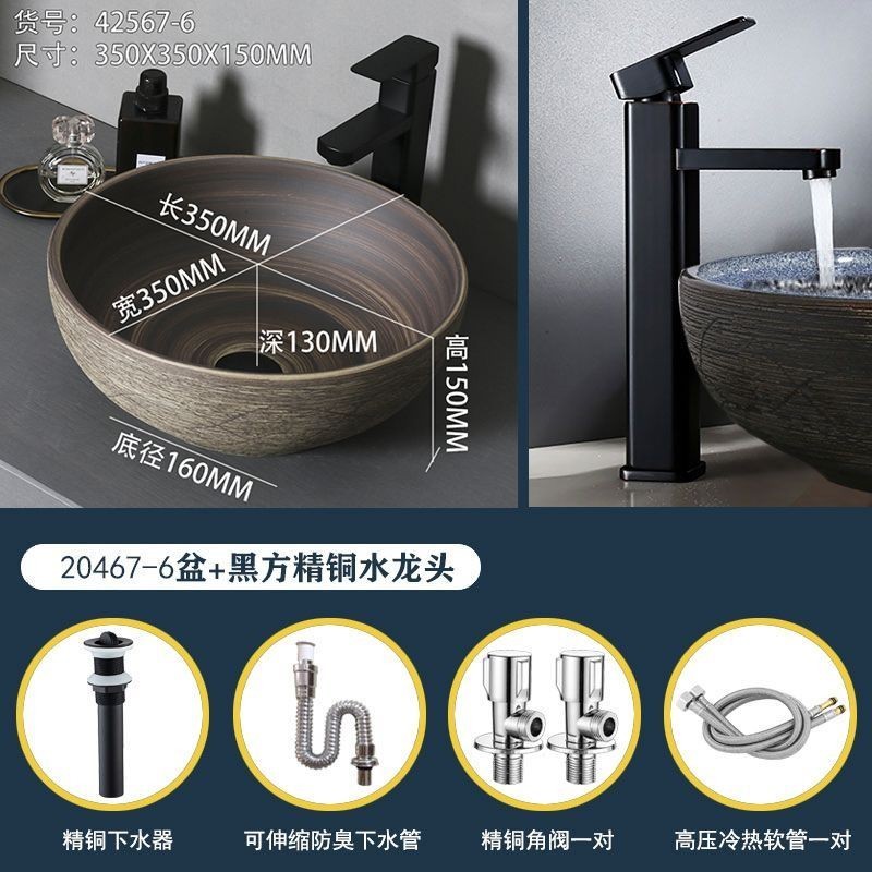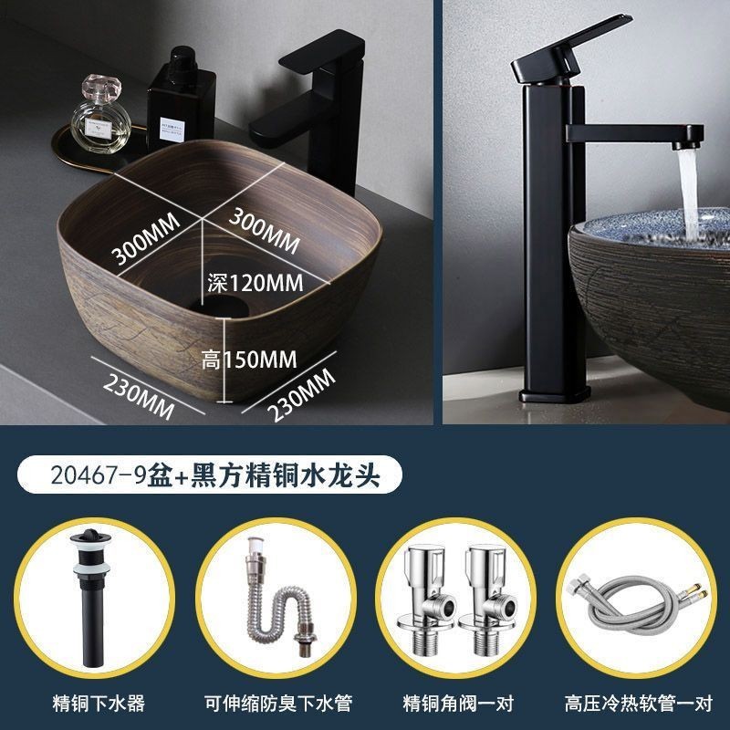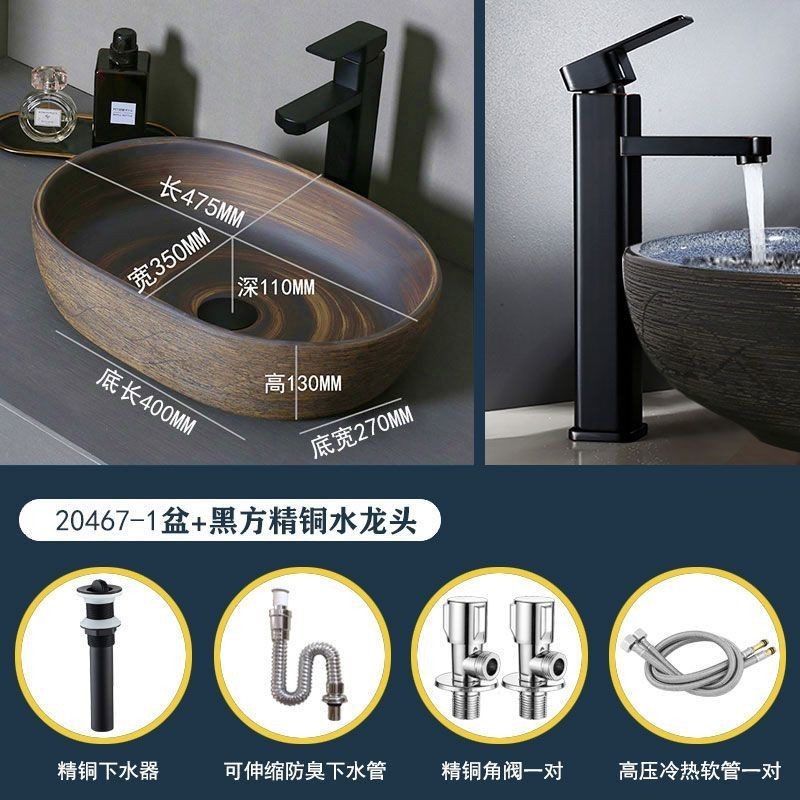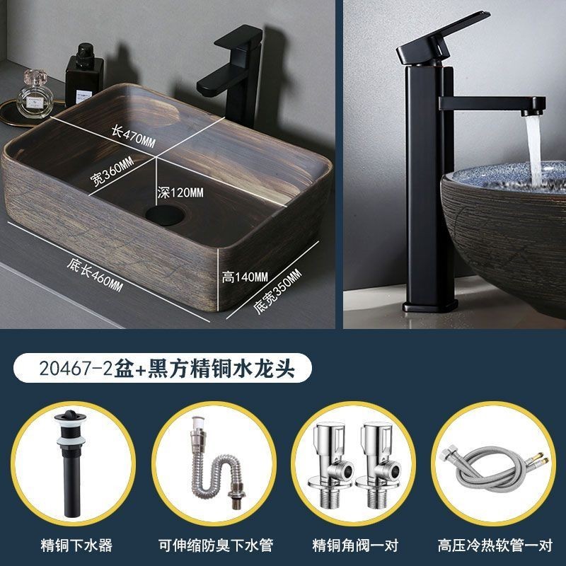 Retro Table Basin Outdoor Wash Basin Courtyard Art Basin Bathroom Ceramic Washbasin Balcony Wash Basin Home