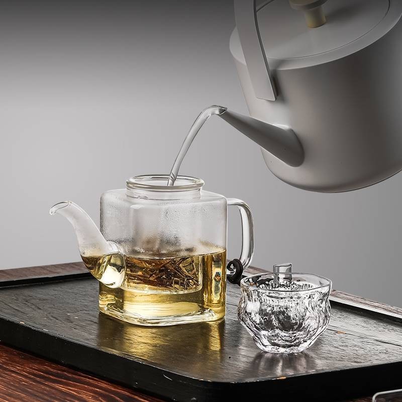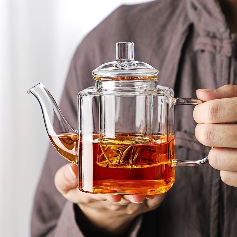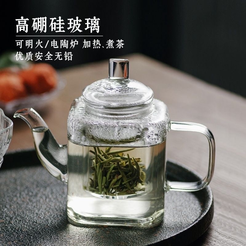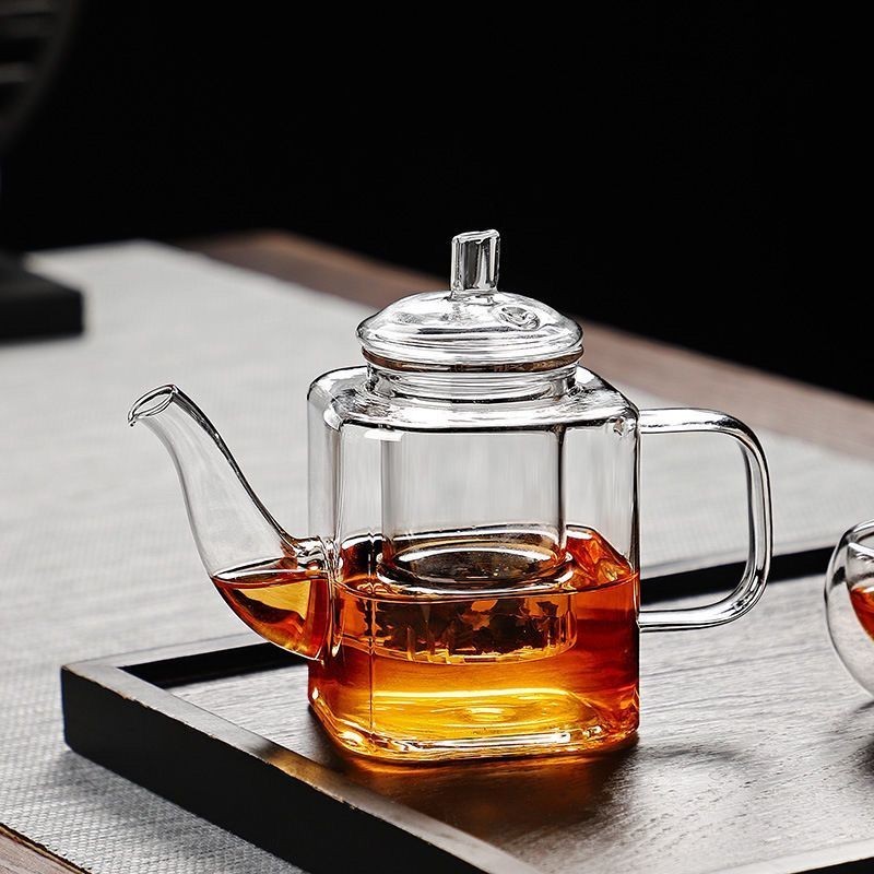 Retro square glass teapot/high borosilicate glass teapot / explosion-proof thickened glass high temperature resistance/Home tea infuser, teapot with filter, single tea infuser