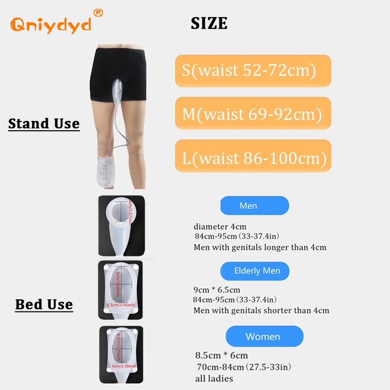 Reusable Urine Leg Bag Incontinence Urinary Leg Bags Leak Proof Silicone Urina Funnel Pee Holder Collector with Catheter 500 ml for Elderly Women Men
