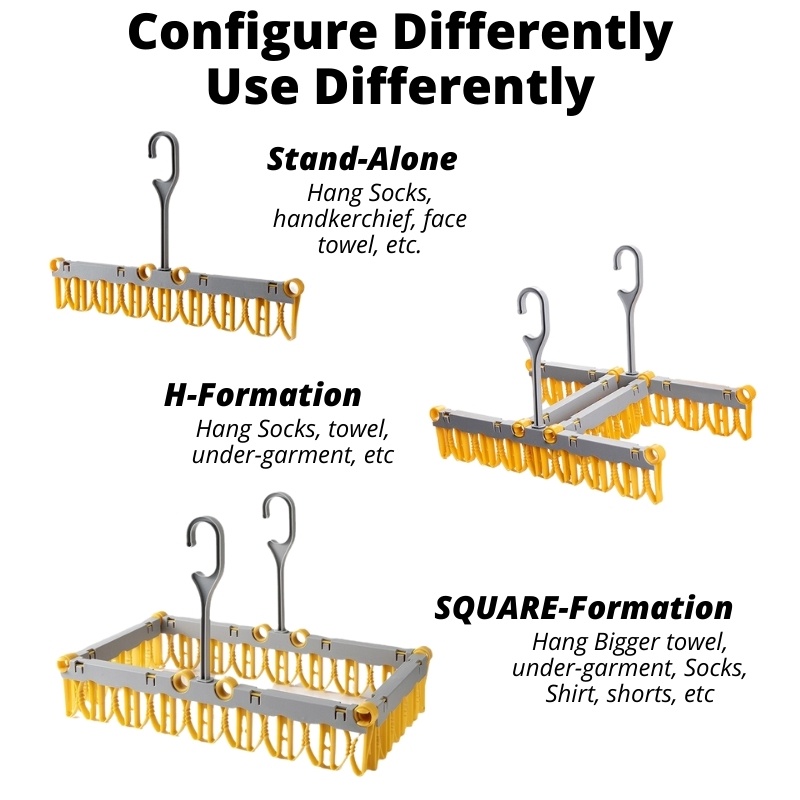 Revolutionary Adjustable Cloth Peg Hanger for Sock, Towel, undergarment, shorts, shirt, etc.